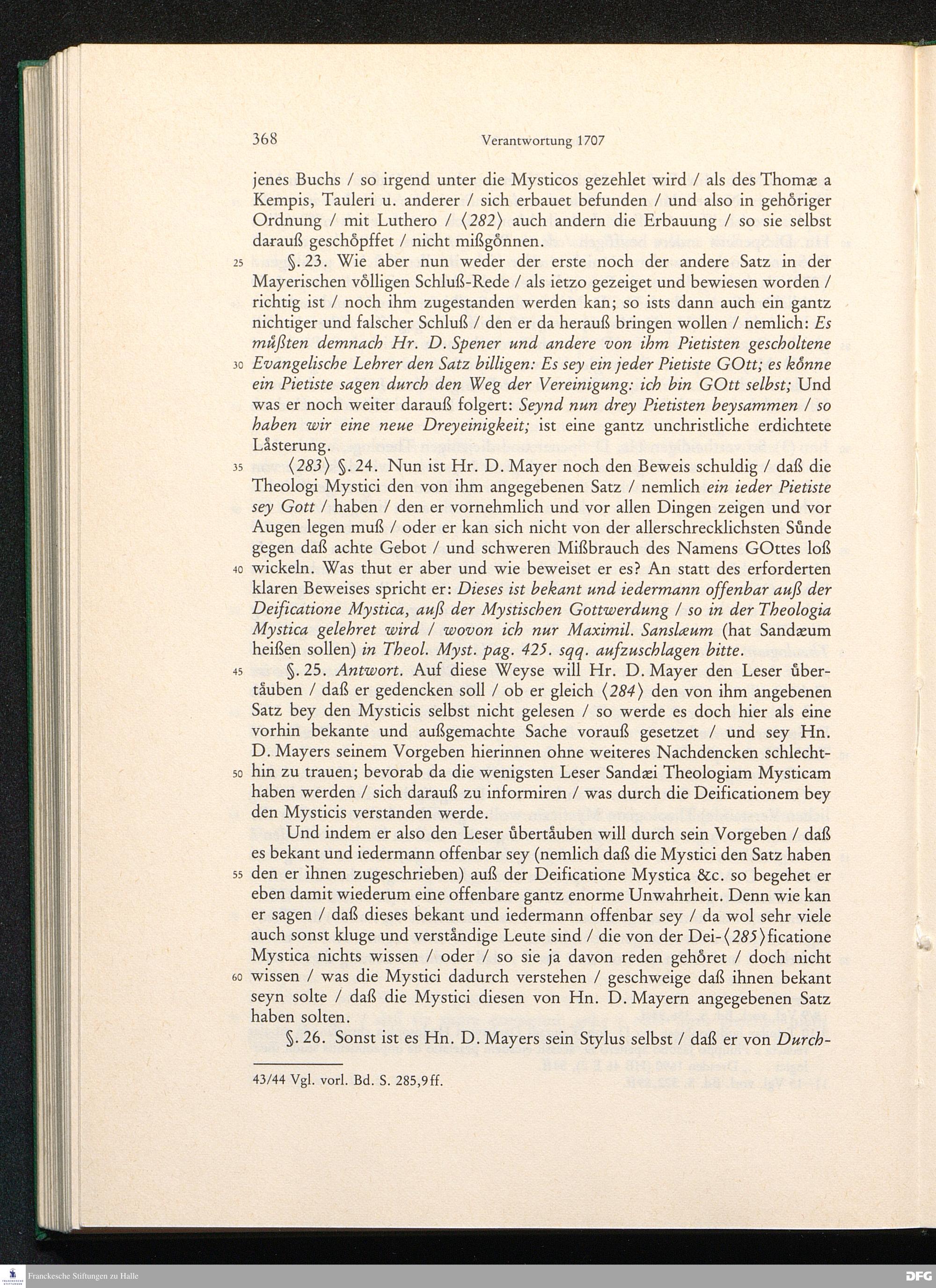 August Hermann Franckens, S. Theol. Prof. zu Halle und Past. zu Glaucha vor Halle, Gründliche und Gewissenhafte Verantwortung gegen Hn. D. Johann Friedrich Mayers, Professoris Theologi auff der Universität zu Greiffswald, harte und unwahrhaffte Beschuldigungen ...