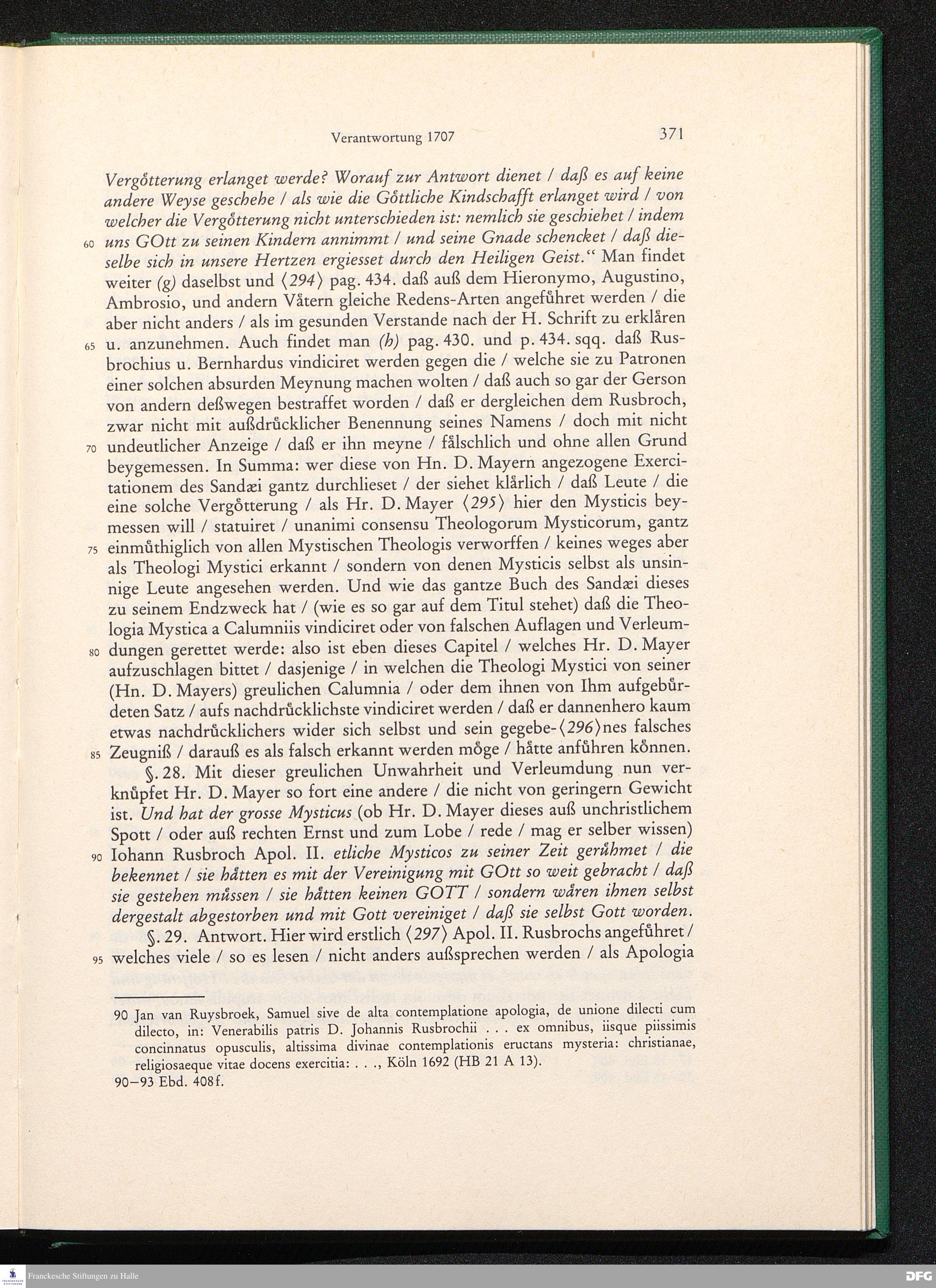 August Hermann Franckens, S. Theol. Prof. zu Halle und Past. zu Glaucha vor Halle, Gründliche und Gewissenhafte Verantwortung gegen Hn. D. Johann Friedrich Mayers, Professoris Theologi auff der Universität zu Greiffswald, harte und unwahrhaffte Beschuldigungen ...