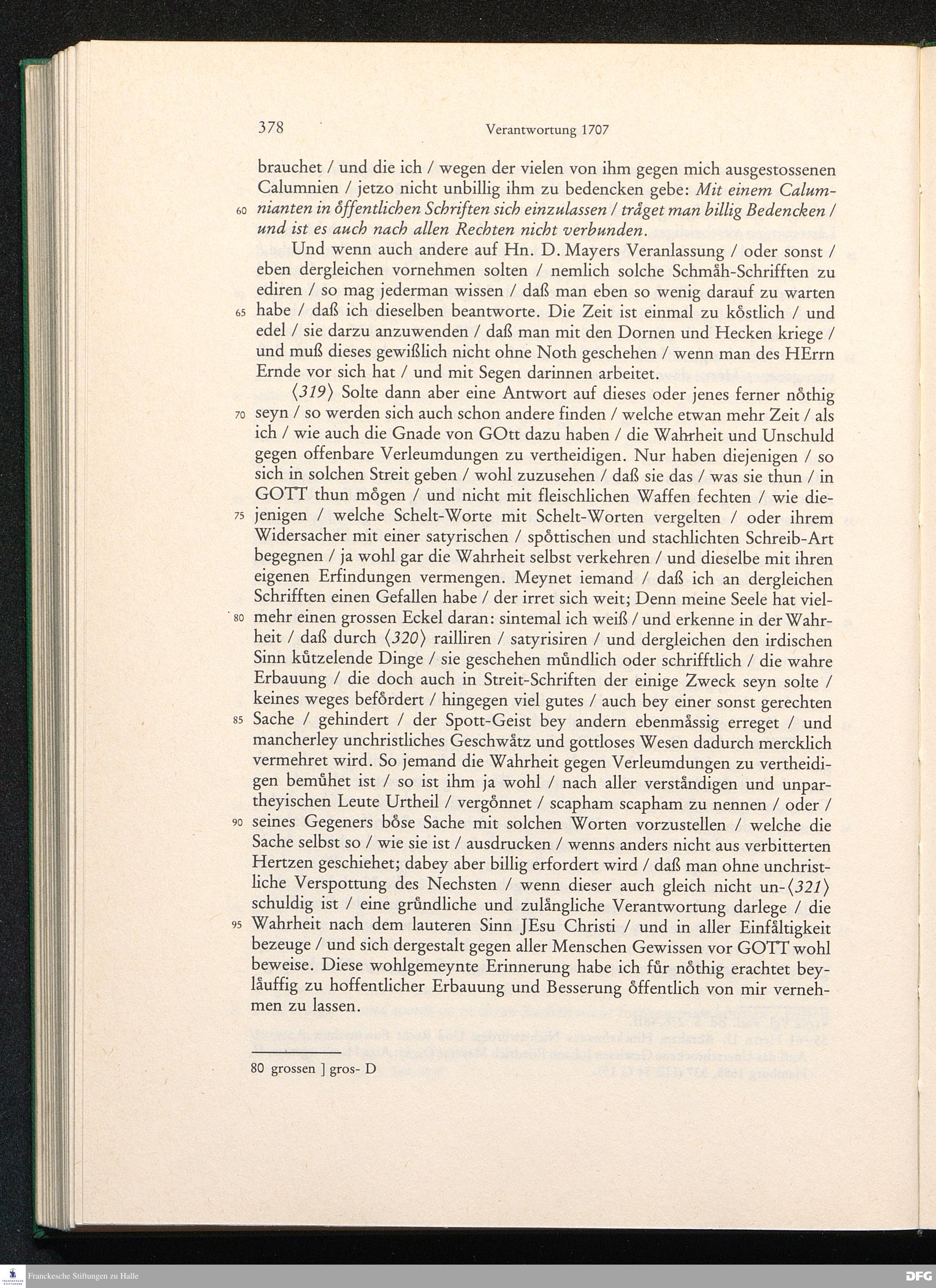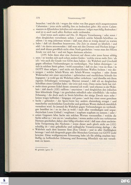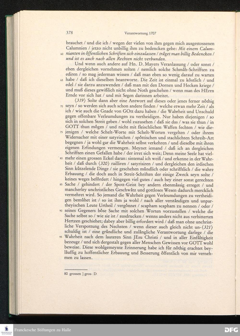 August Hermann Franckens, S. Theol. Prof. zu Halle und Past. zu Glaucha vor Halle, Gründliche und Gewissenhafte Verantwortung gegen Hn. D. Johann Friedrich Mayers, Professoris Theologi auff der Universität zu Greiffswald, harte und unwahrhaffte Beschuldigungen ...