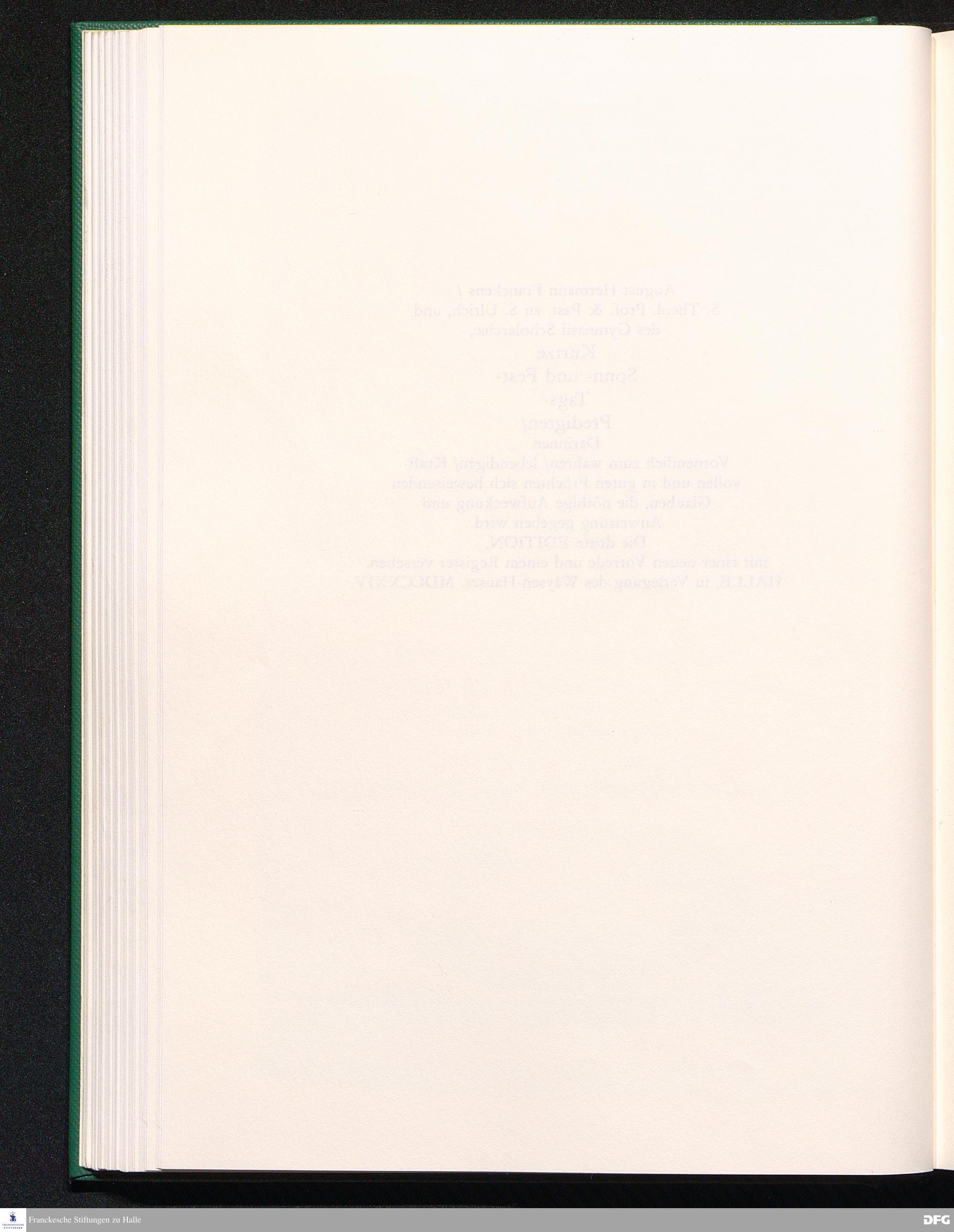 Erster Teil: Auswahl aus den Predigtsammlungen 1706 bis 1726