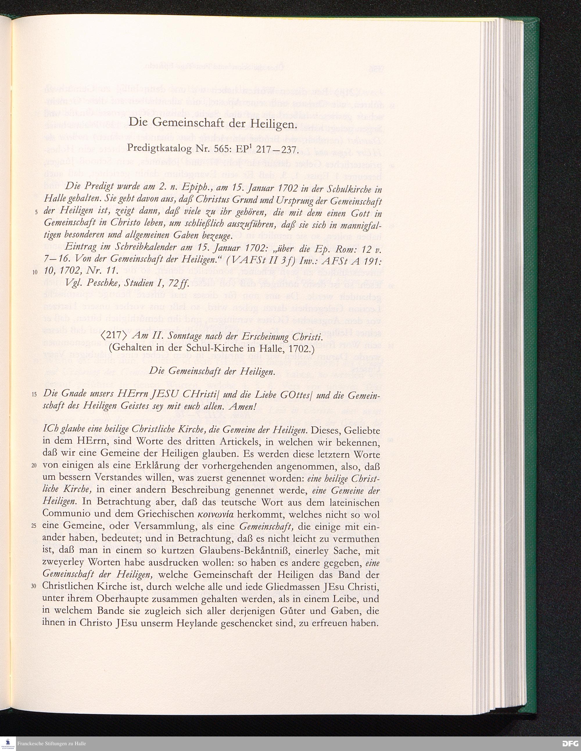 Erster Teil: Auswahl aus den Predigtsammlungen 1706 bis 1726