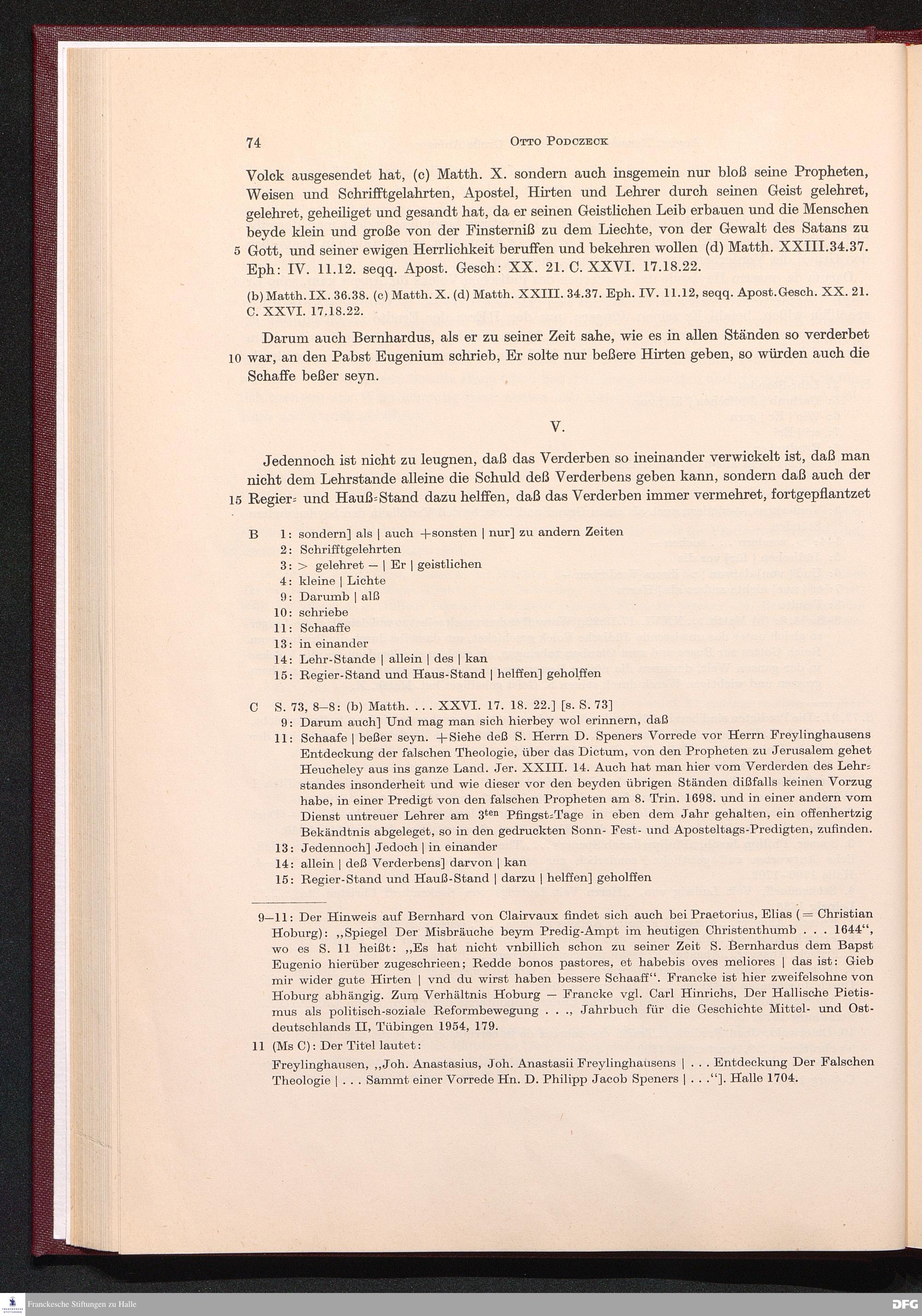 August Hermann Franckes Schrift über eine Reform des Erziehungs- und Bildungswesens als Ausgangspunkt einer geistlichen und sozialen Neuordnung der evangelischen Kirche des 18. Jahrhunderts : der grosse Aufsatz / mit einer quellenkundlichen Einführung hrsg. von Otto Podczeck