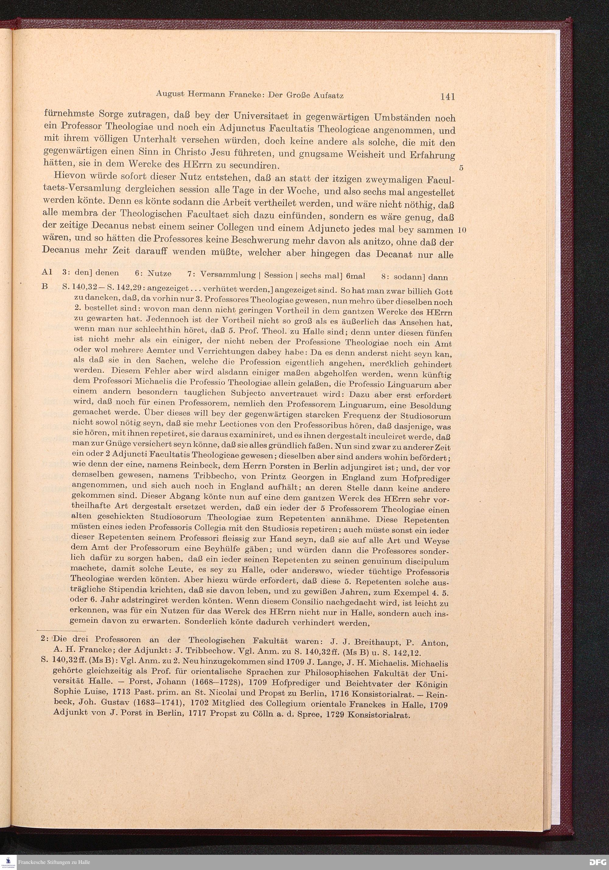 August Hermann Franckes Schrift über eine Reform des Erziehungs- und Bildungswesens als Ausgangspunkt einer geistlichen und sozialen Neuordnung der evangelischen Kirche des 18. Jahrhunderts : der grosse Aufsatz / mit einer quellenkundlichen Einführung hrsg. von Otto Podczeck