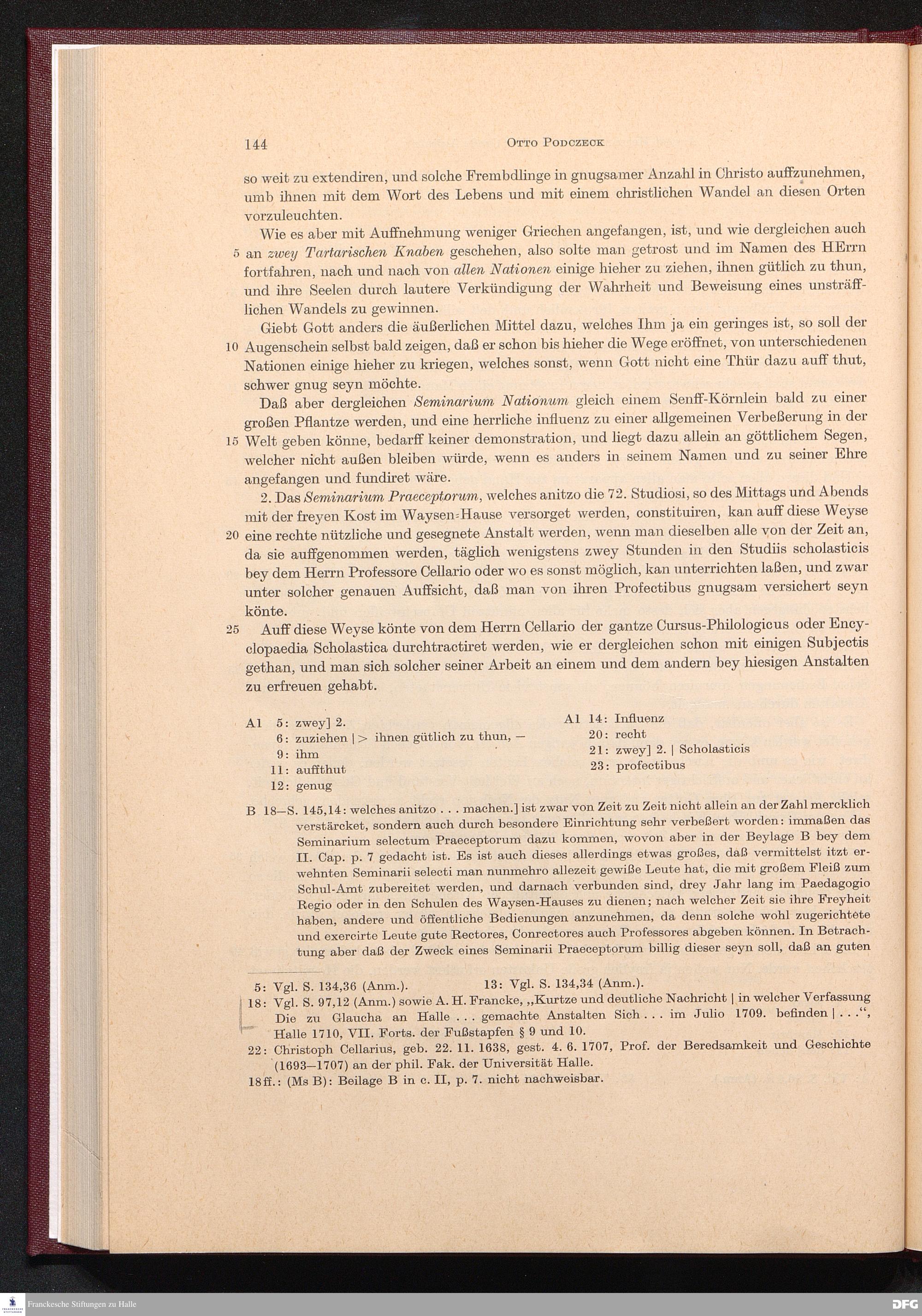 August Hermann Franckes Schrift über eine Reform des Erziehungs- und Bildungswesens als Ausgangspunkt einer geistlichen und sozialen Neuordnung der evangelischen Kirche des 18. Jahrhunderts : der grosse Aufsatz / mit einer quellenkundlichen Einführung hrsg. von Otto Podczeck