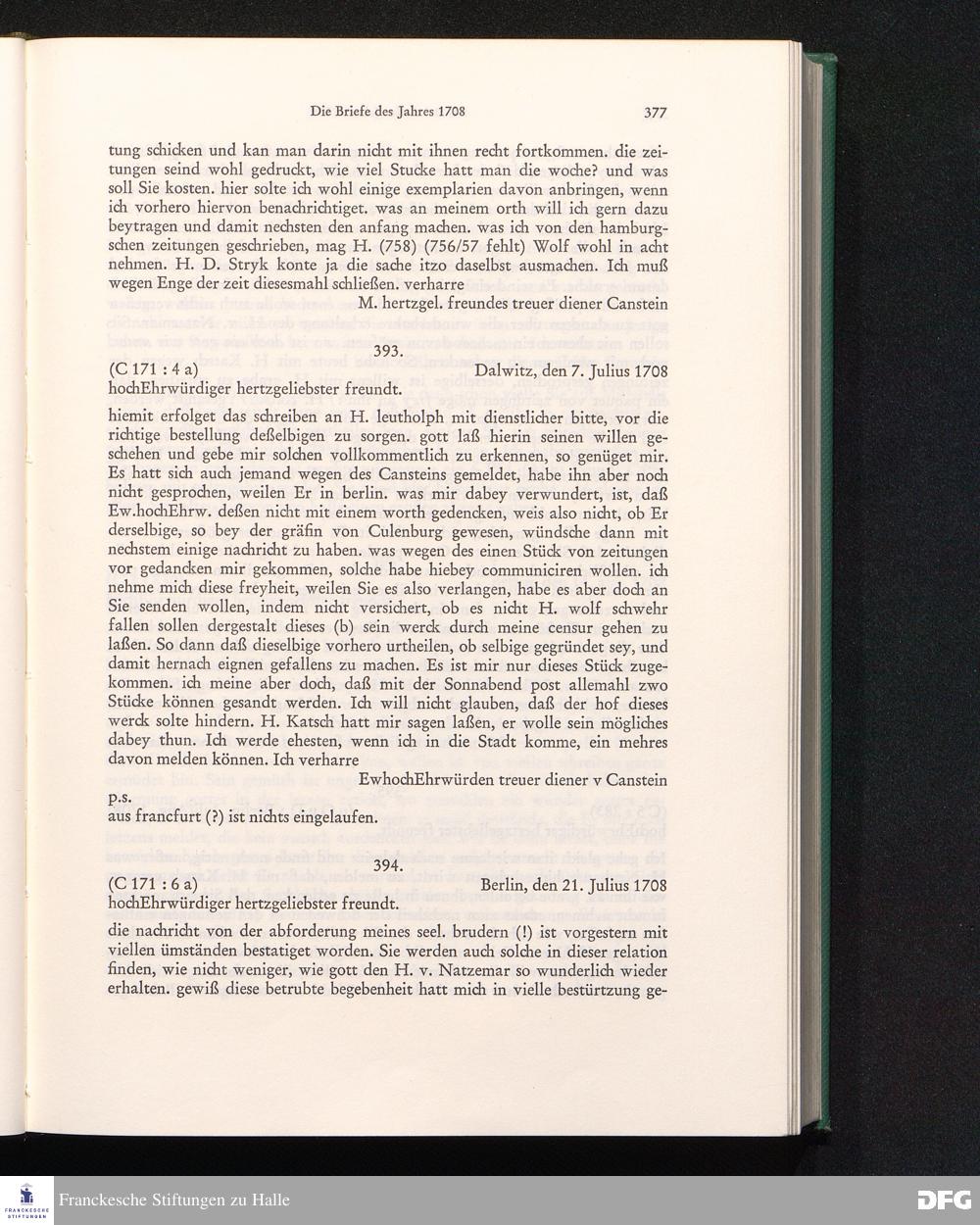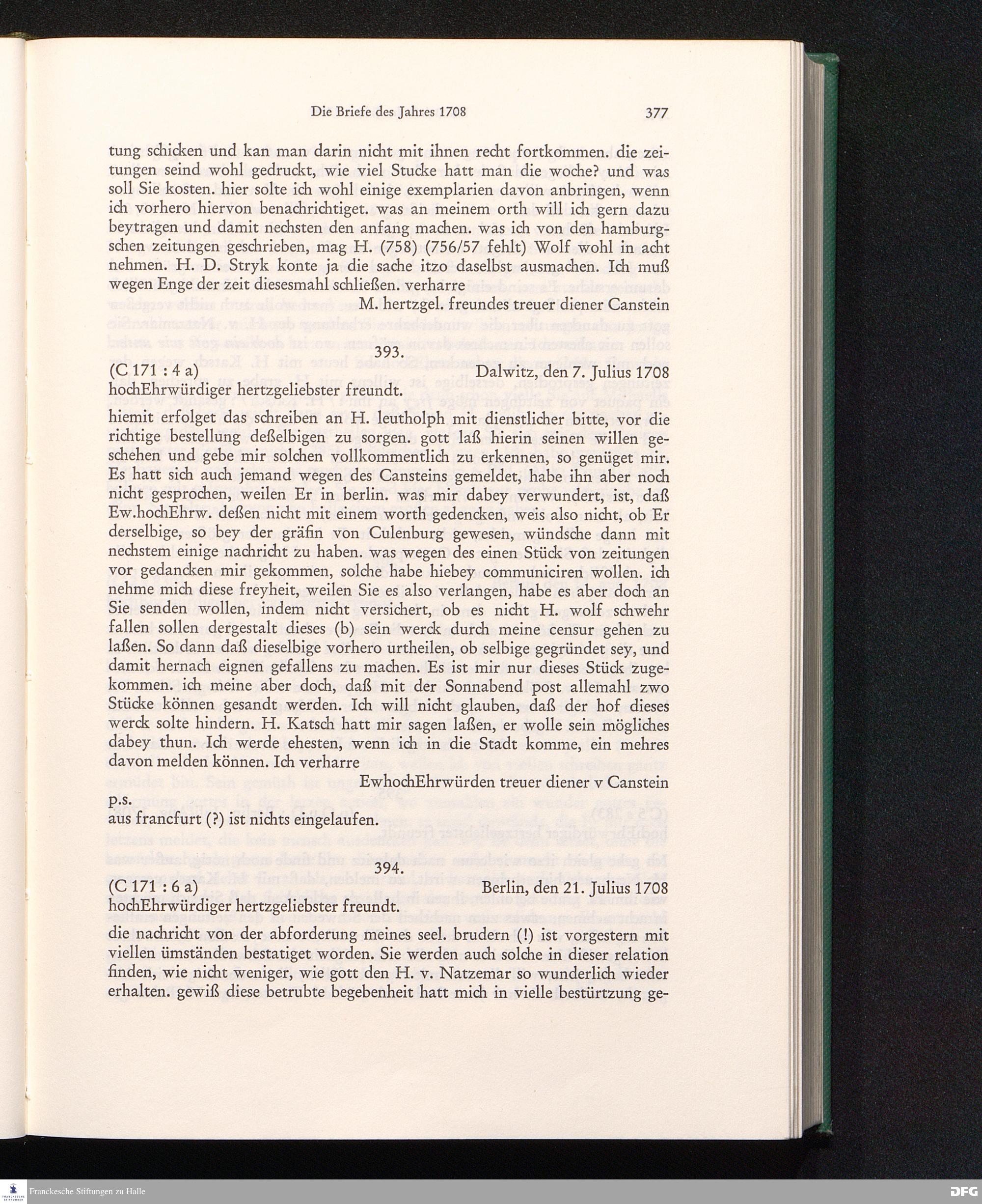 Abt. 3, Bd. 1 (1972) Der Briefwechsel Carl Hildebrand von Cansteins mit August Hermann Francke / hrsg. von Peter Schicketanz