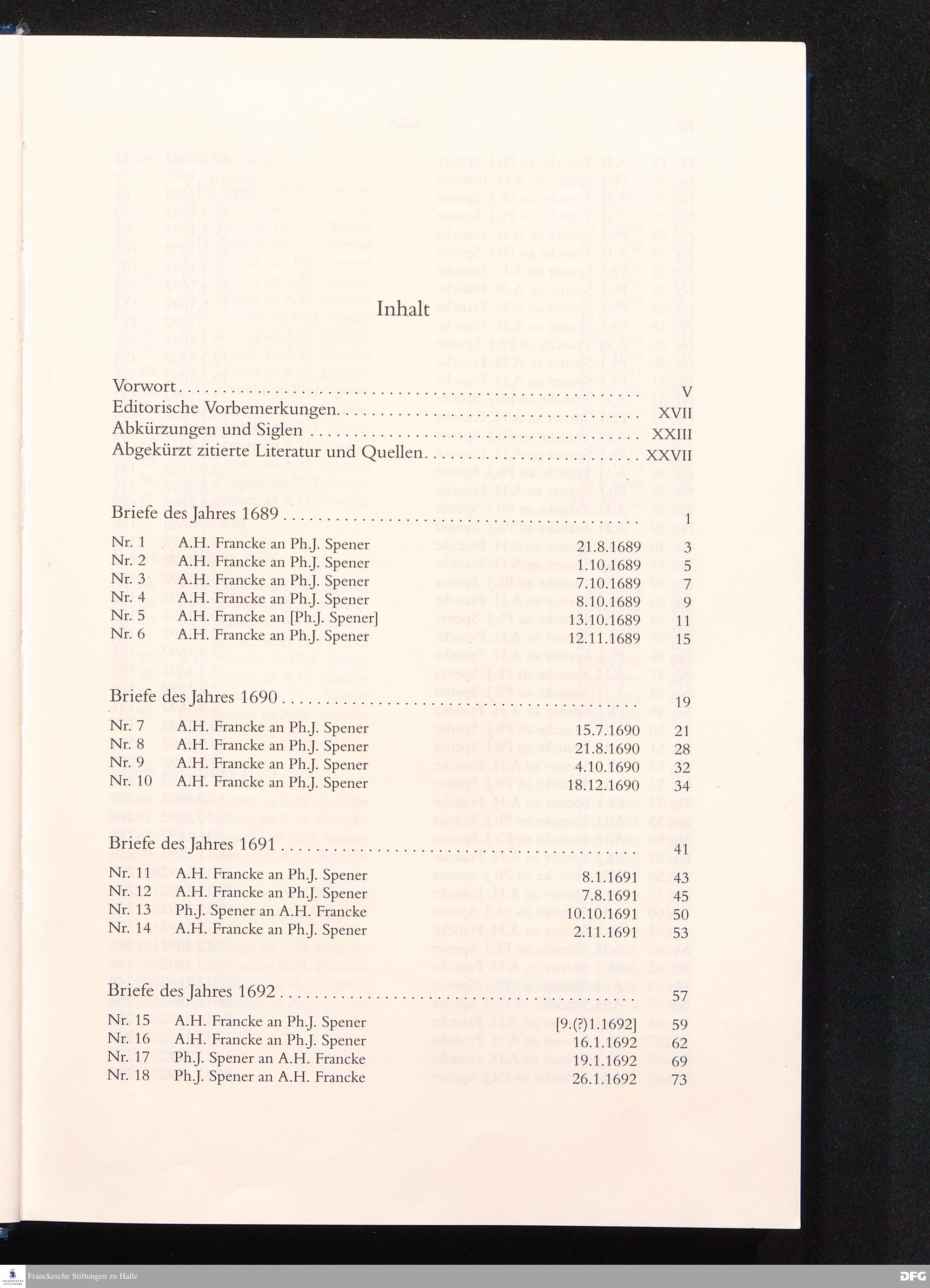 Briefwechsel mit August Hermann Francke : 1689 - 1704 / Philipp Jakob Spener. Hrsg. von Johannes Wallmann ... in Zsarb. mit Veronika Albrecht-Birkner