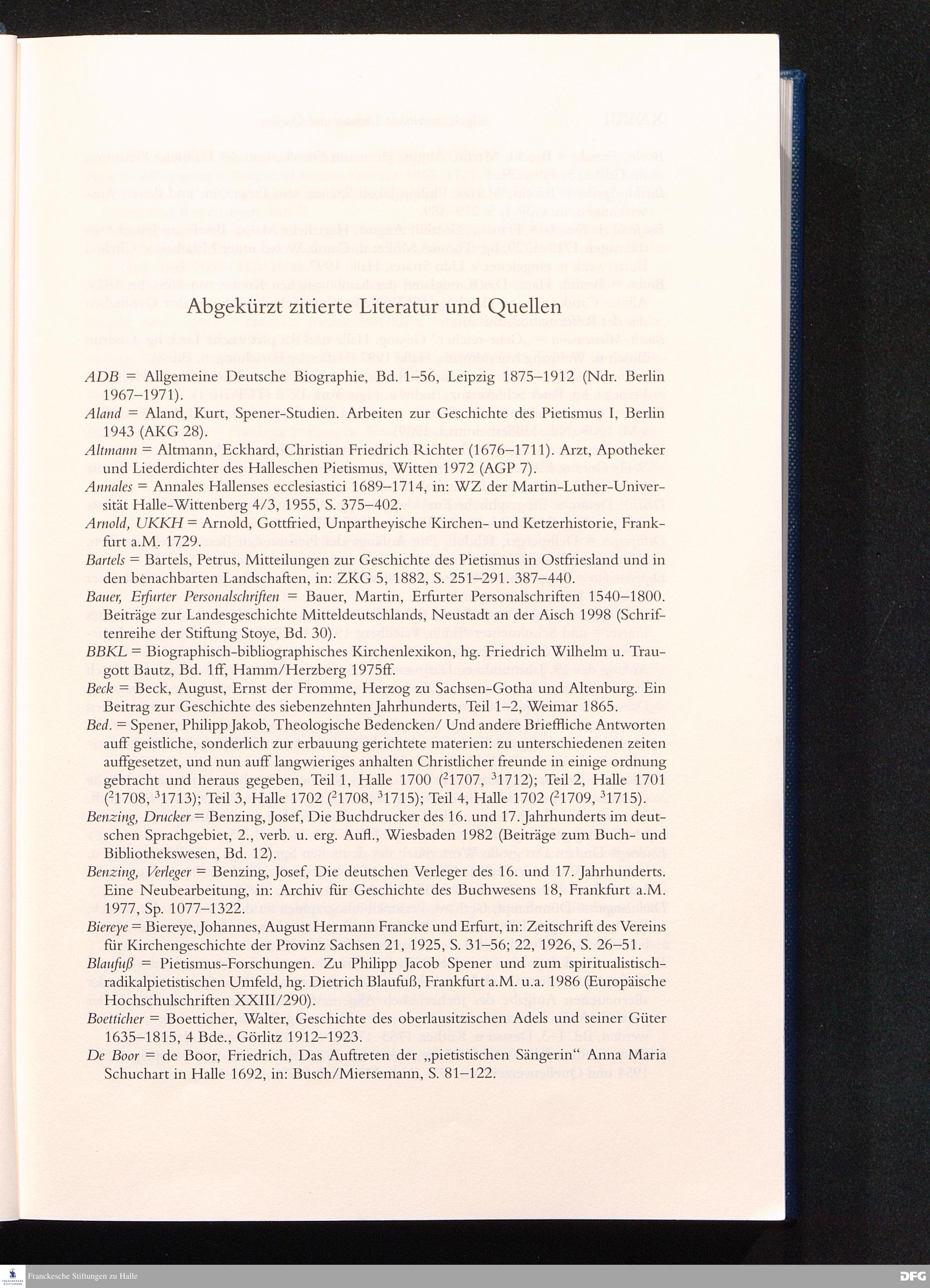 Briefwechsel mit August Hermann Francke : 1689 - 1704 / Philipp Jakob Spener. Hrsg. von Johannes Wallmann ... in Zsarb. mit Veronika Albrecht-Birkner