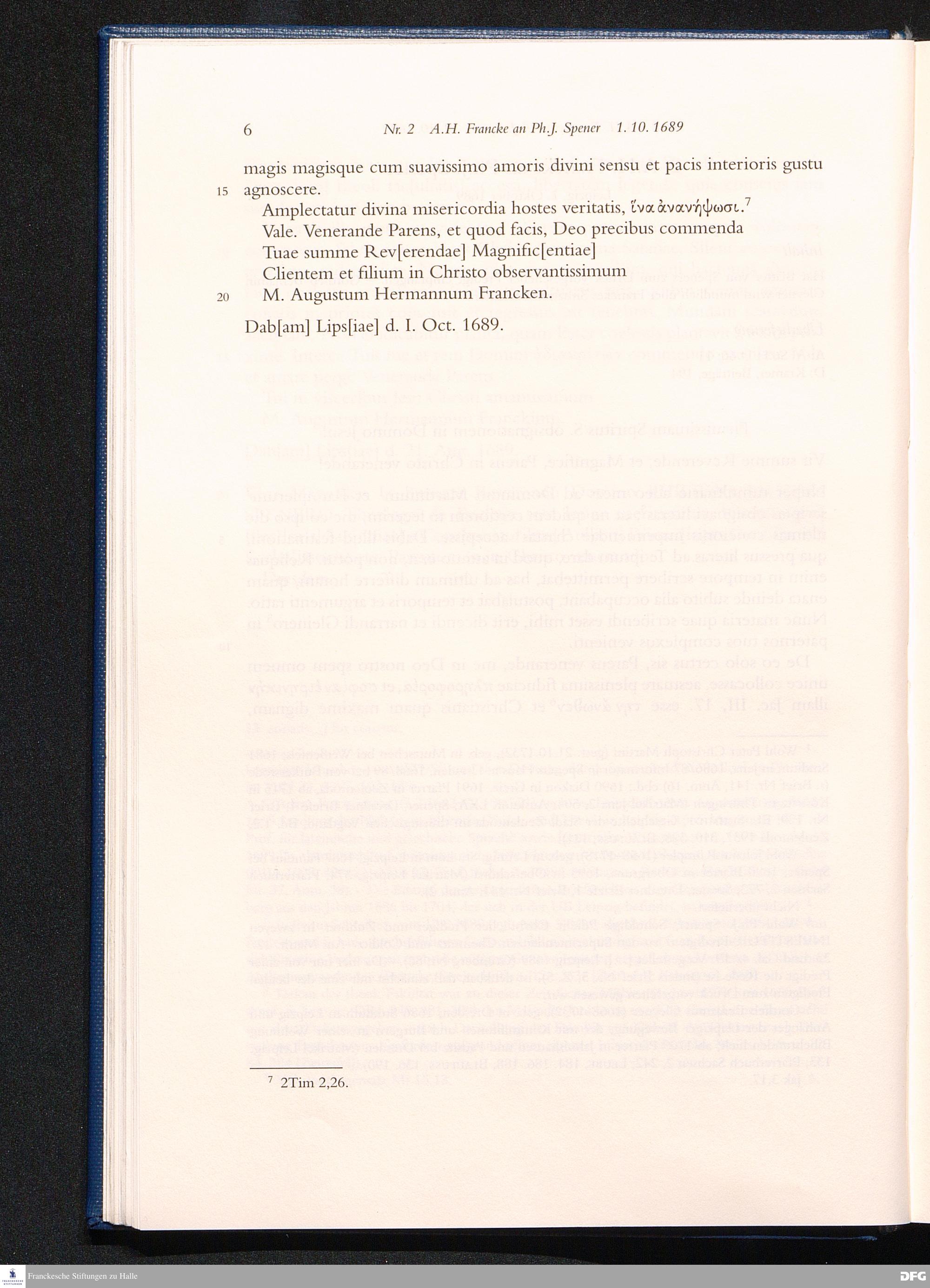 Nr. 2 A. H. Francke an Ph. J. Spener 01.10.1689