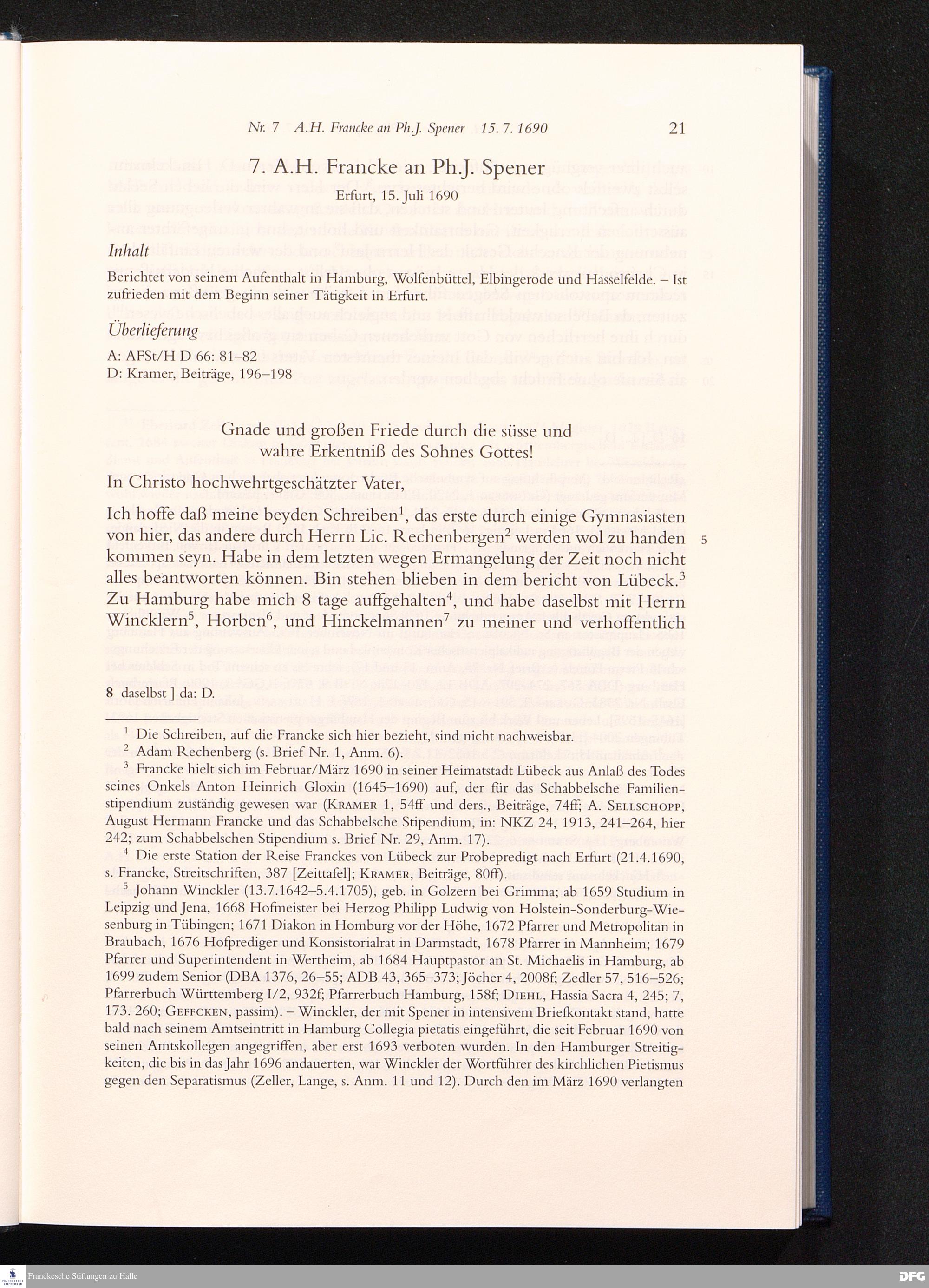 Nr. 7 A. H. Francke an Ph. J. Spener 15.07.1690