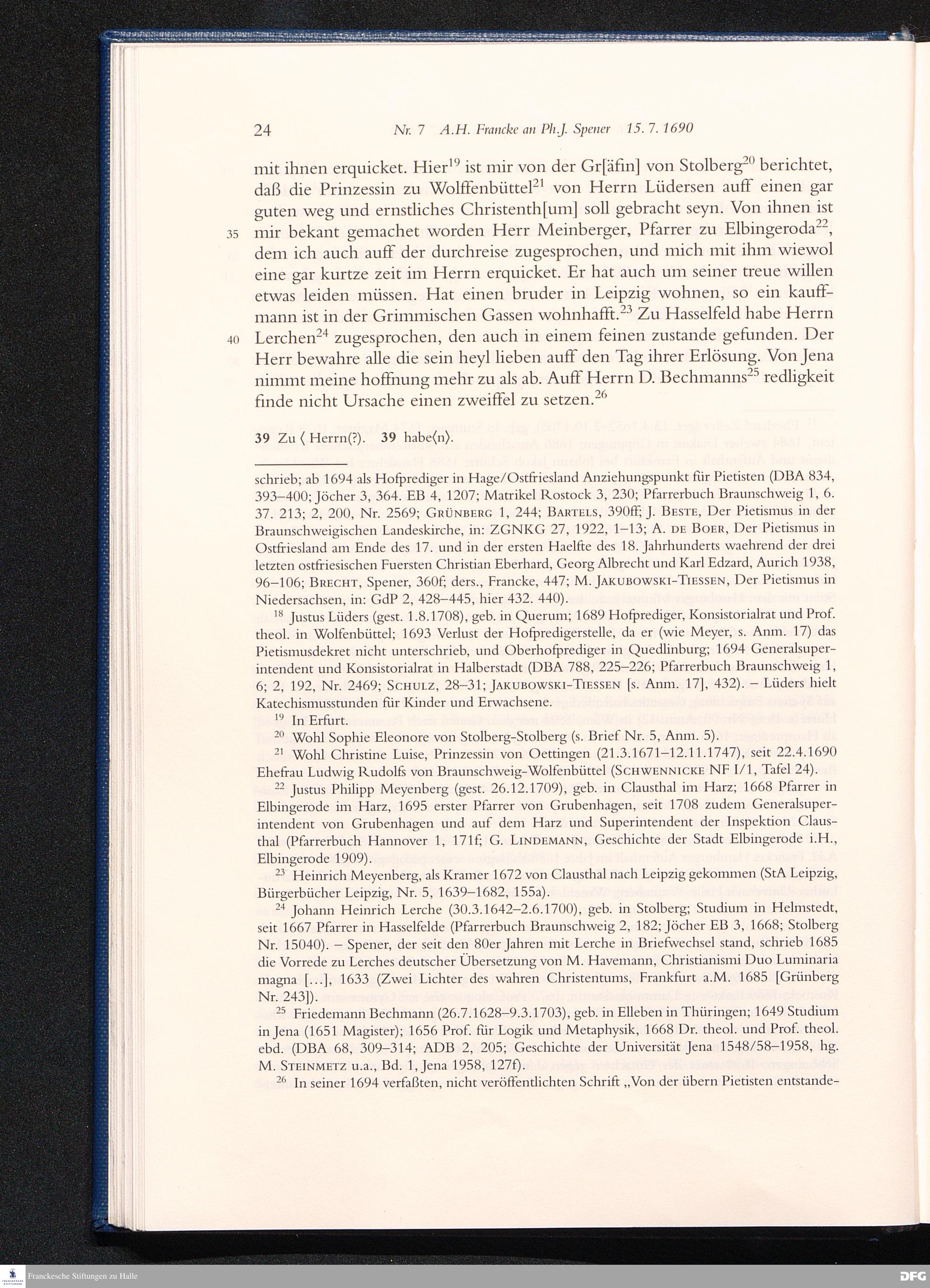 Nr. 7 A. H. Francke an Ph. J. Spener 15.07.1690
