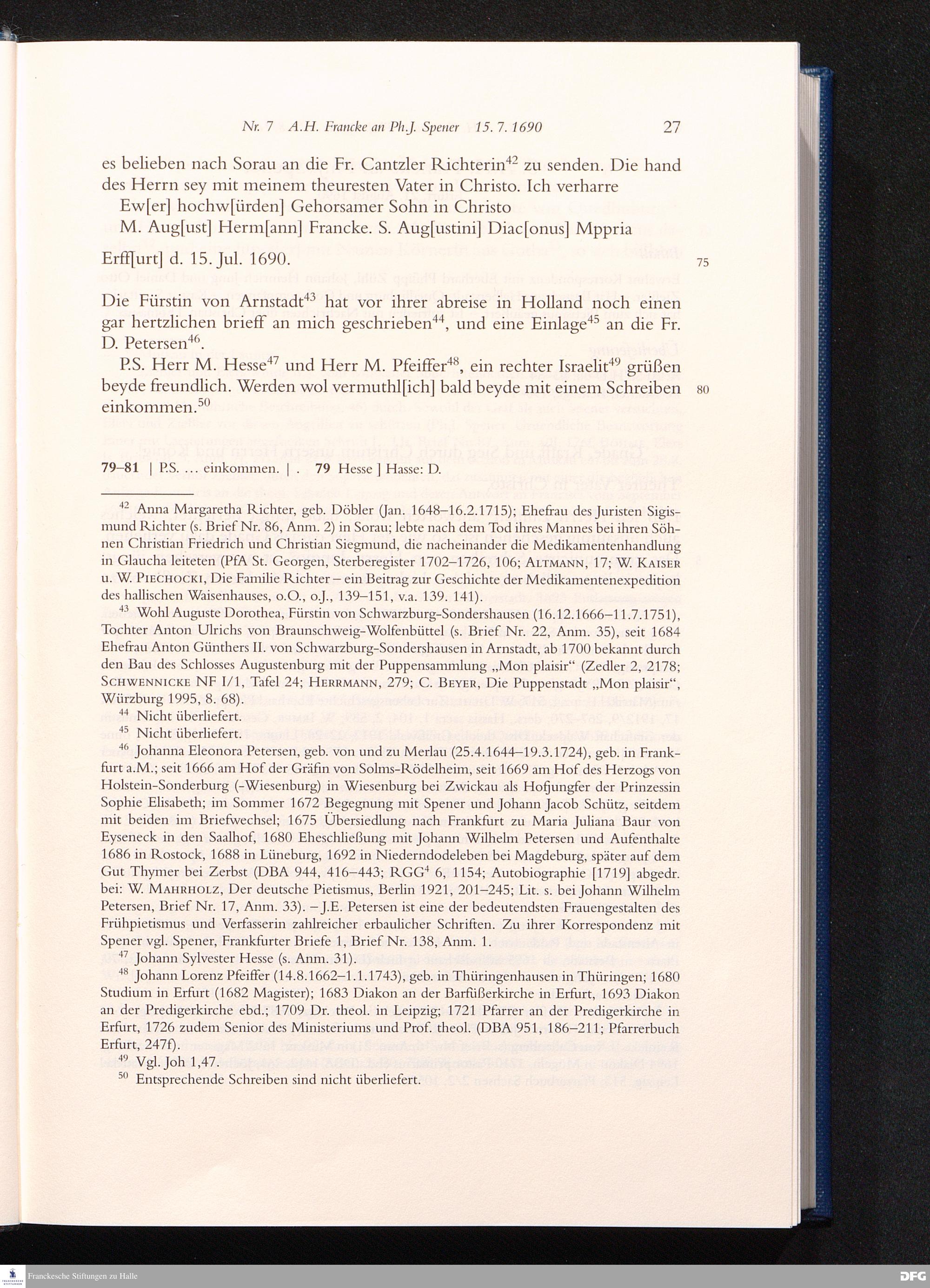 Nr. 7 A. H. Francke an Ph. J. Spener 15.07.1690