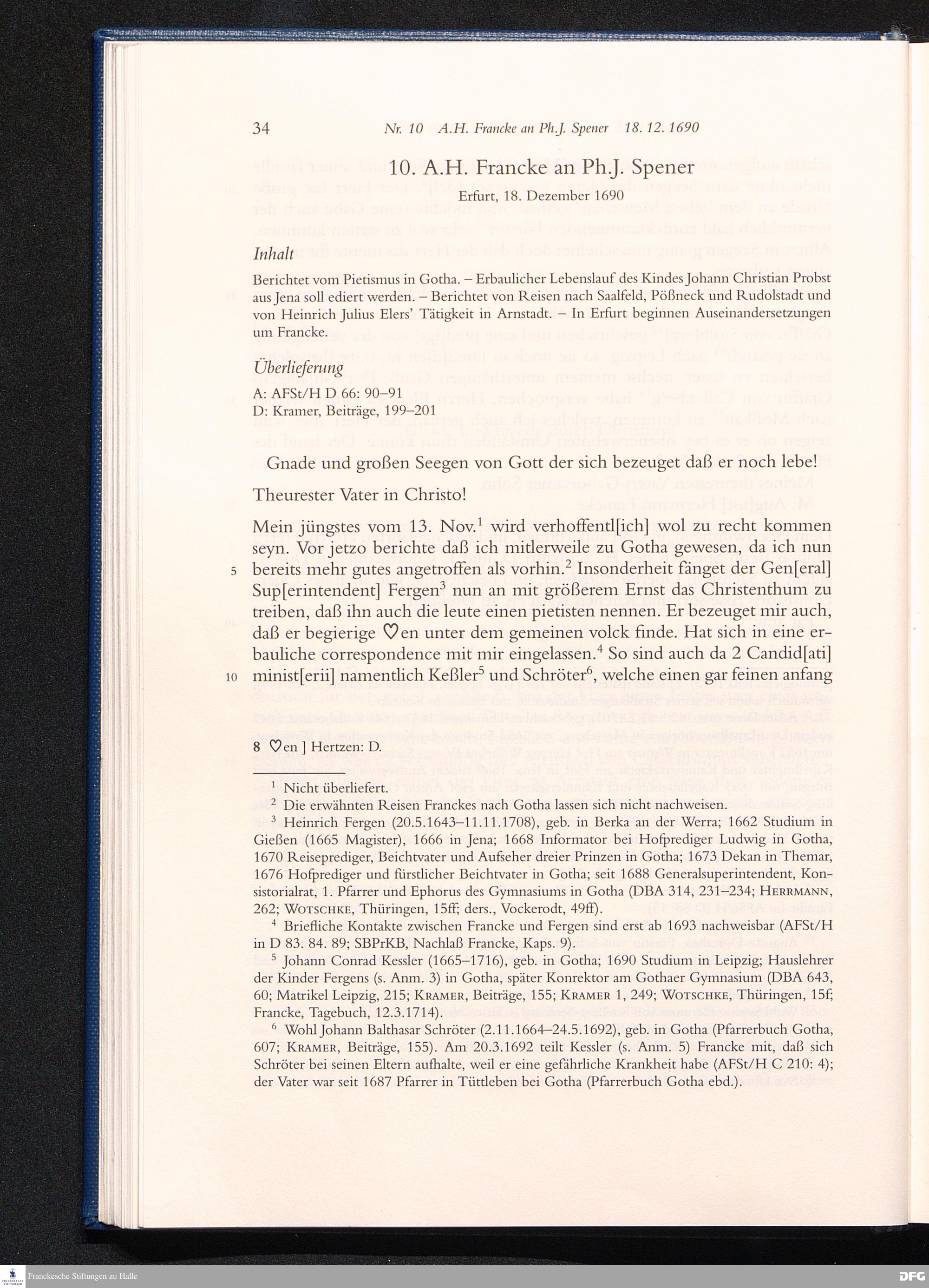 Nr. 10 A. H. Francke an Ph. J. Spener 18.12.1690