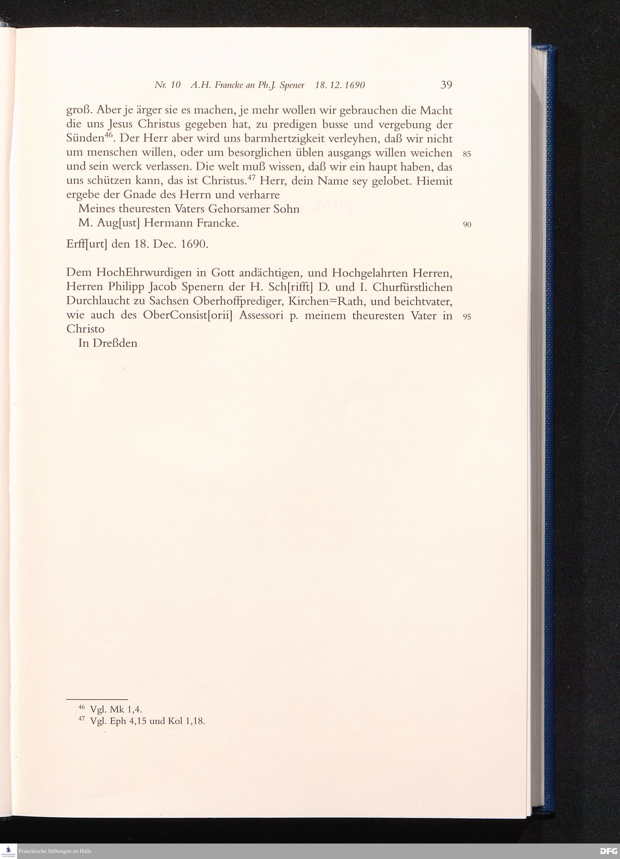 Nr. 10 A. H. Francke an Ph. J. Spener 18.12.1690