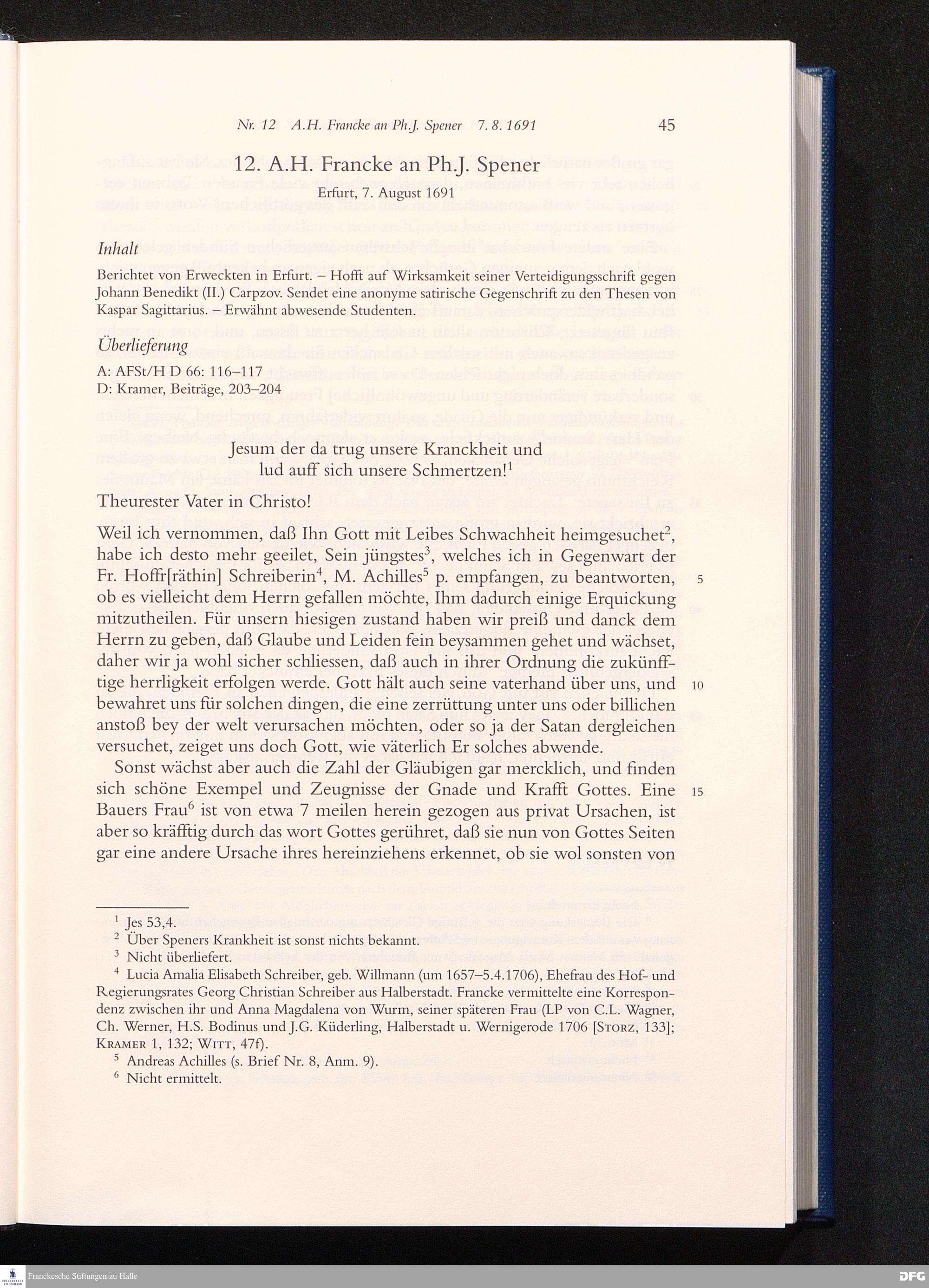 Nr. 12 A. H. Francke an Ph. J. Spener 07.08.1691