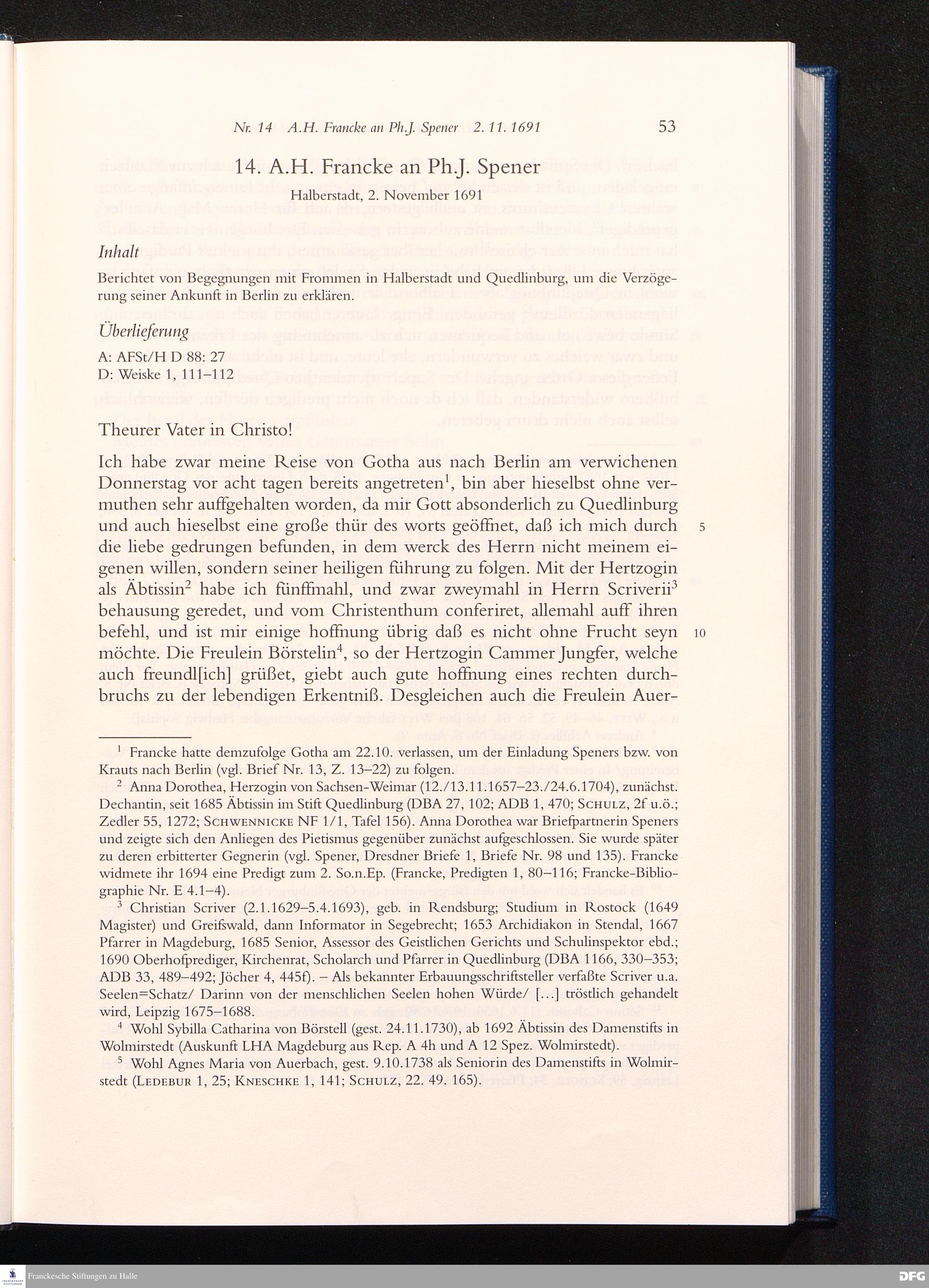 Nr. 14 A. H. Francke an Ph. J. Spener 02.11.1691