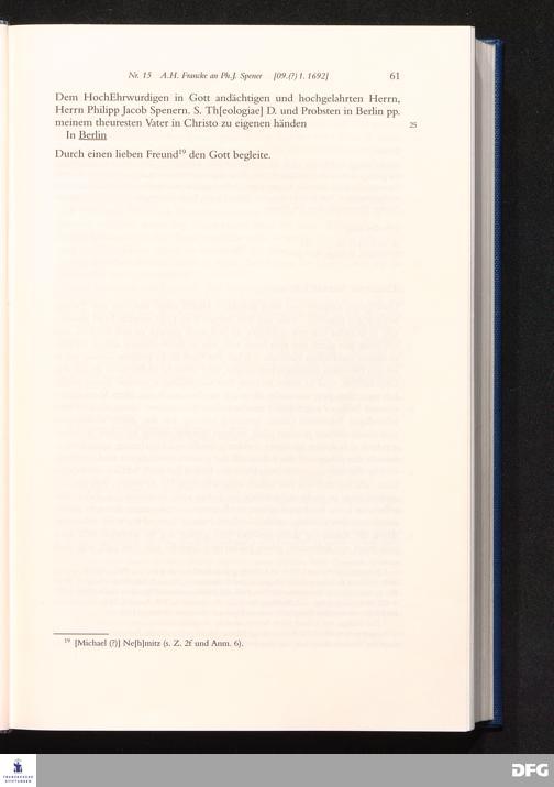 Nr. 15 A. H. Francke an Ph. J. Spener [09.(?)01.1692]