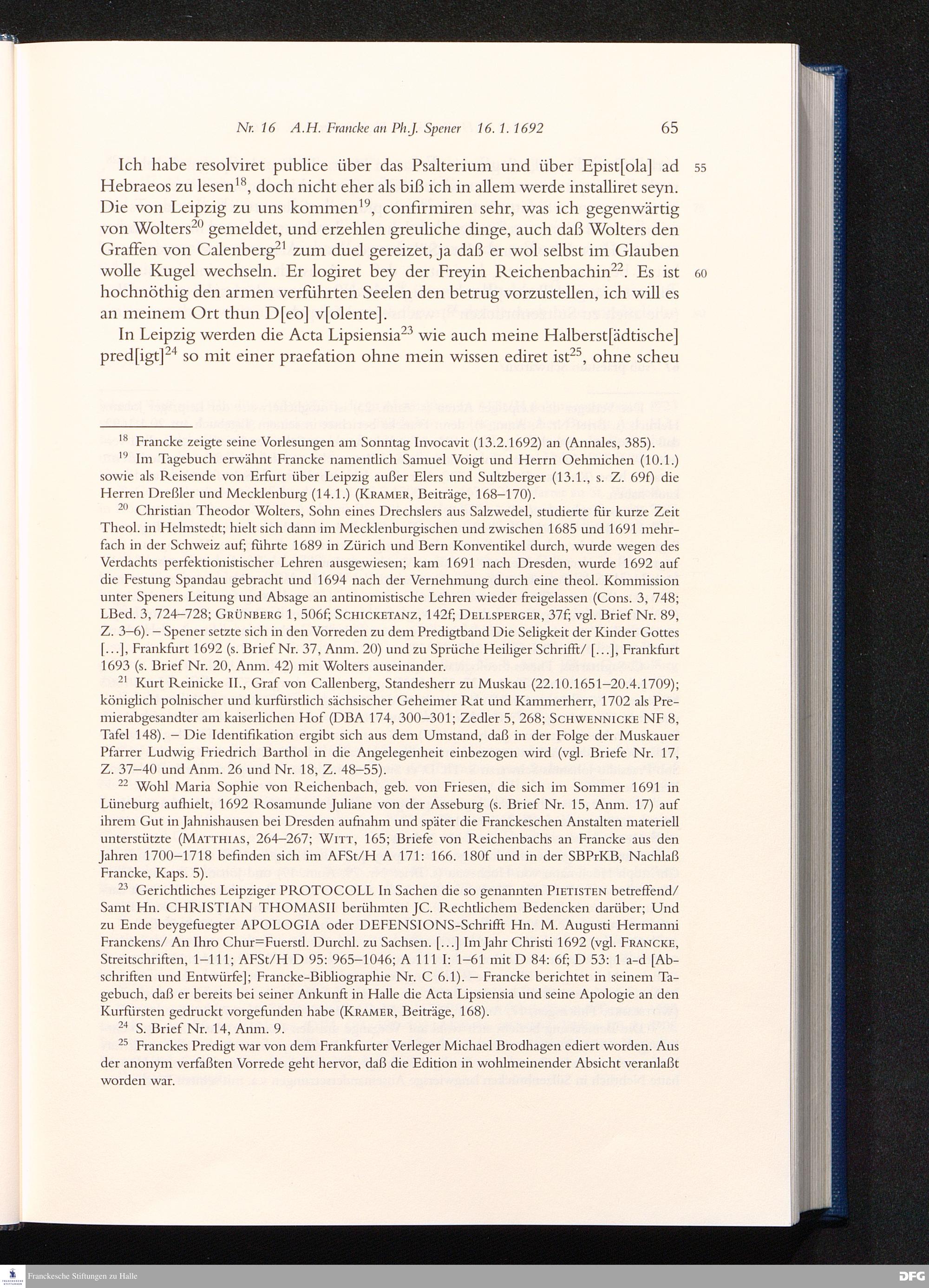 Nr. 16 A. H. Francke an Ph. J. Spener 16.01.1692