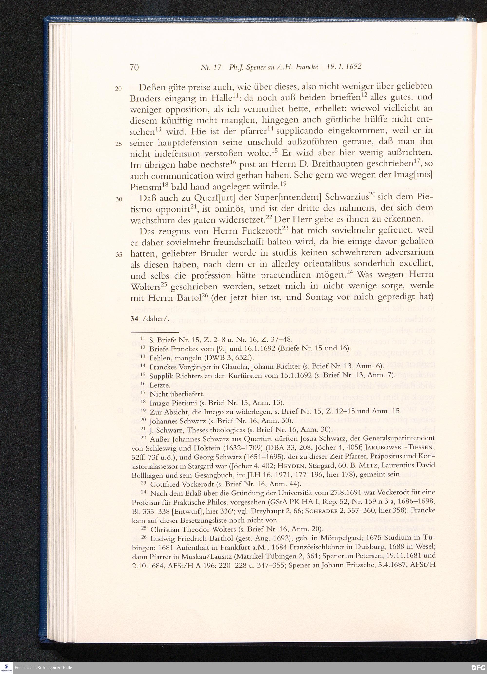 Briefwechsel mit August Hermann Francke : 1689 - 1704 / Philipp Jakob Spener. Hrsg. von Johannes Wallmann ... in Zsarb. mit Veronika Albrecht-Birkner