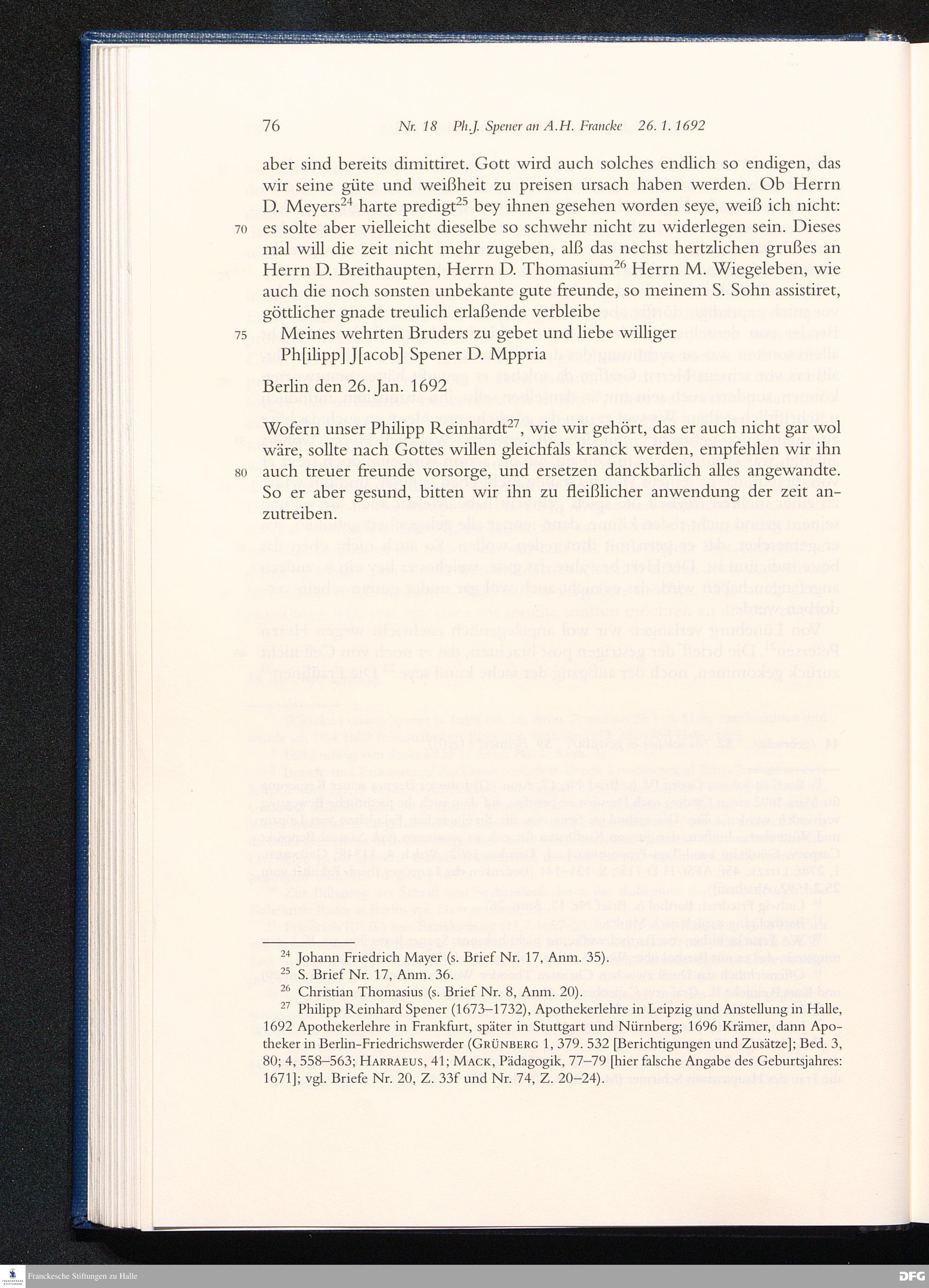 Briefwechsel mit August Hermann Francke : 1689 - 1704 / Philipp Jakob Spener. Hrsg. von Johannes Wallmann ... in Zsarb. mit Veronika Albrecht-Birkner