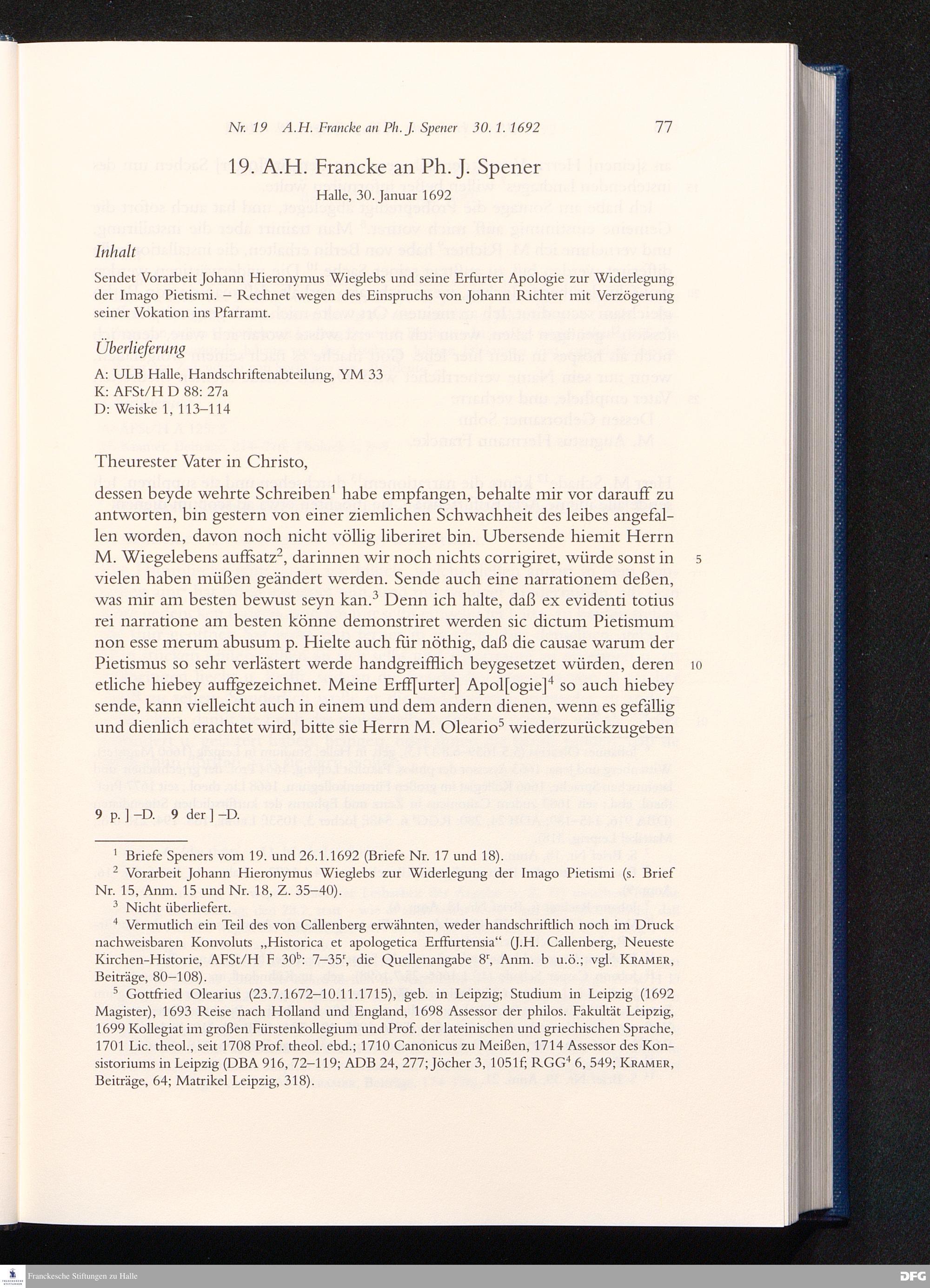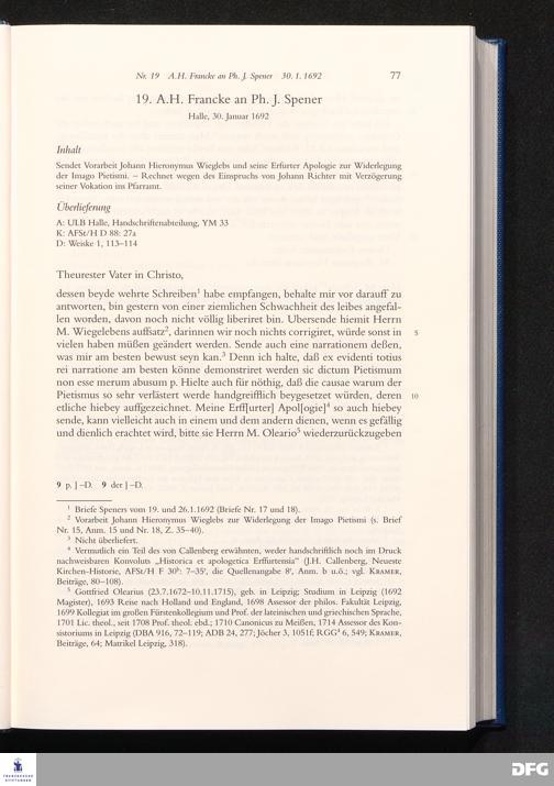 Nr. 19 A. H. Francke an Ph. J. Spener 30.01.1692