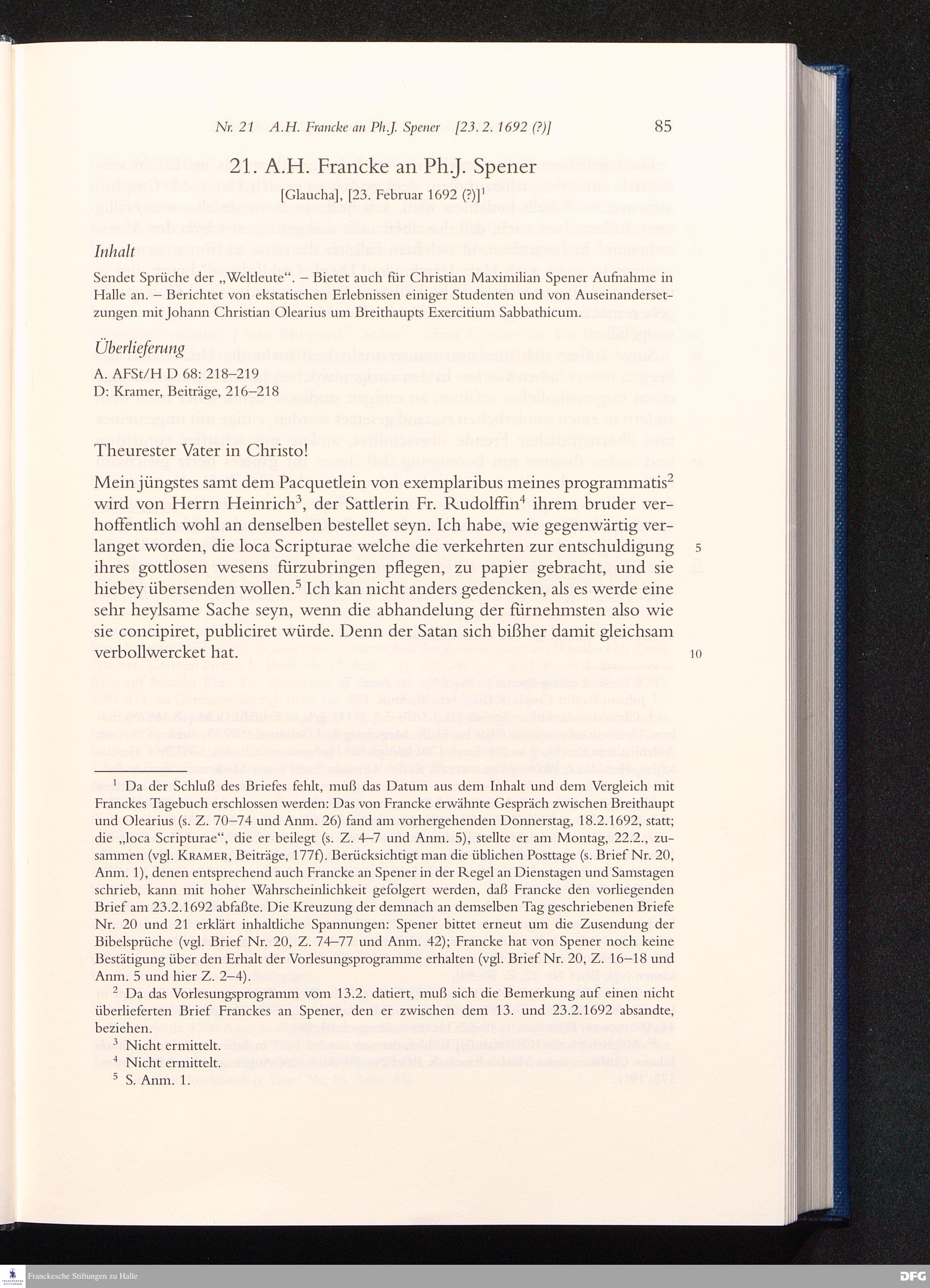 Nr. 21 A. H. Francke an Ph. J. Spener [23.02.1692 (?)]