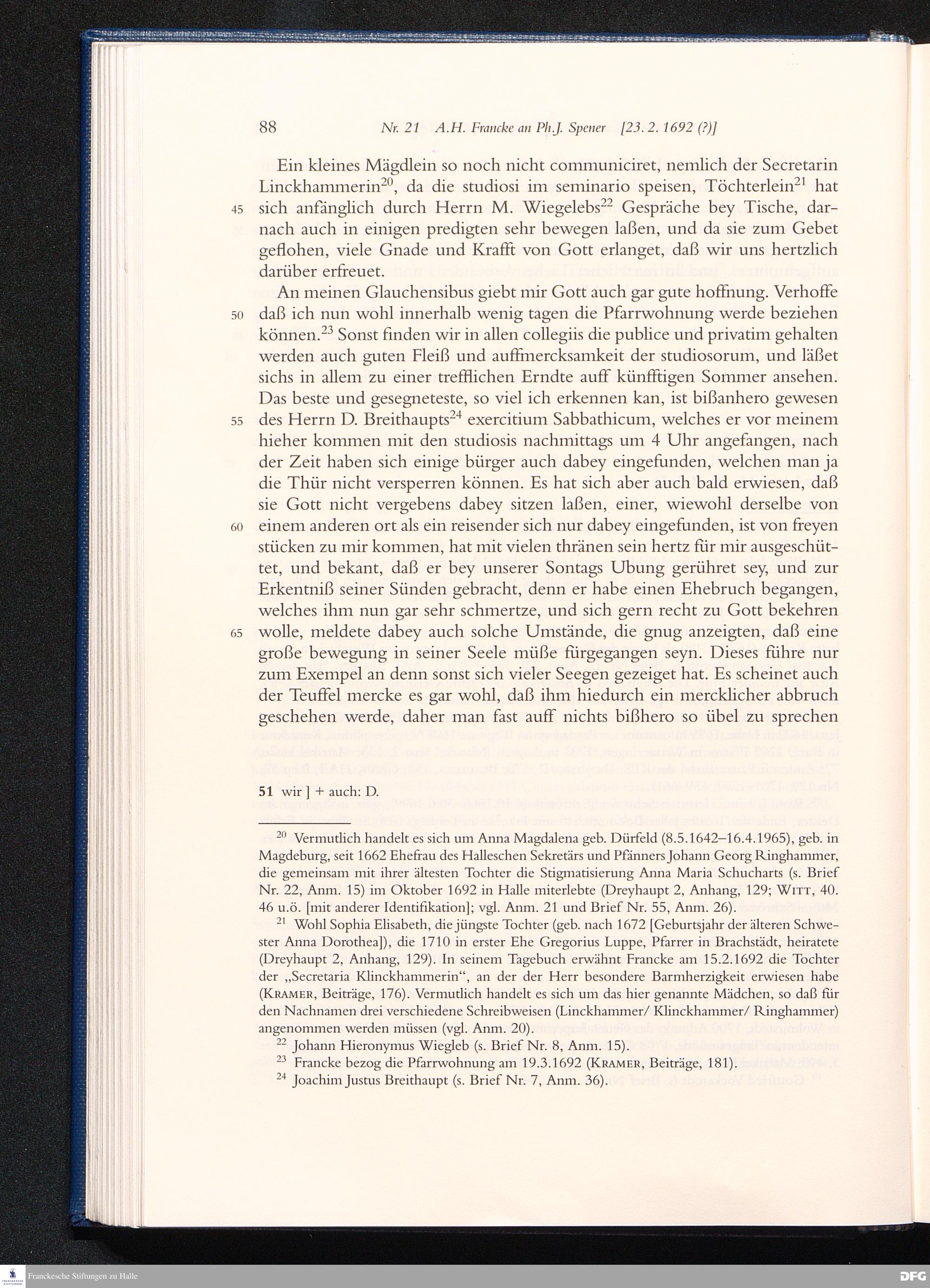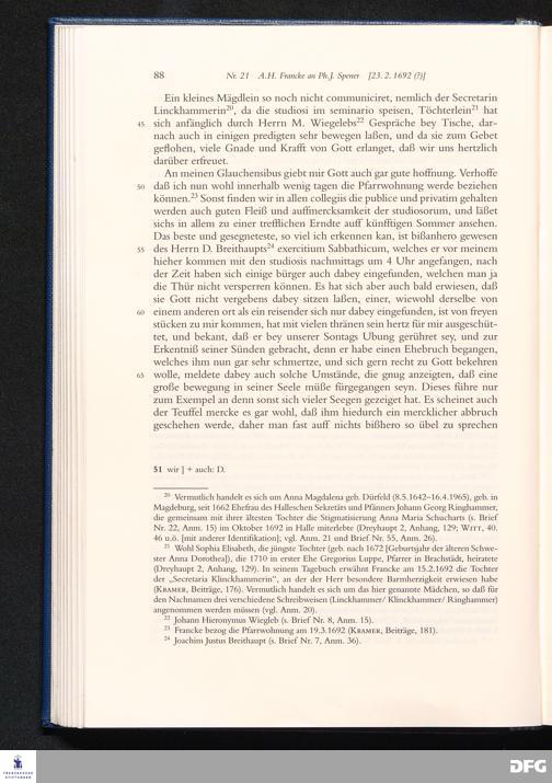Nr. 21 A. H. Francke an Ph. J. Spener [23.02.1692 (?)]