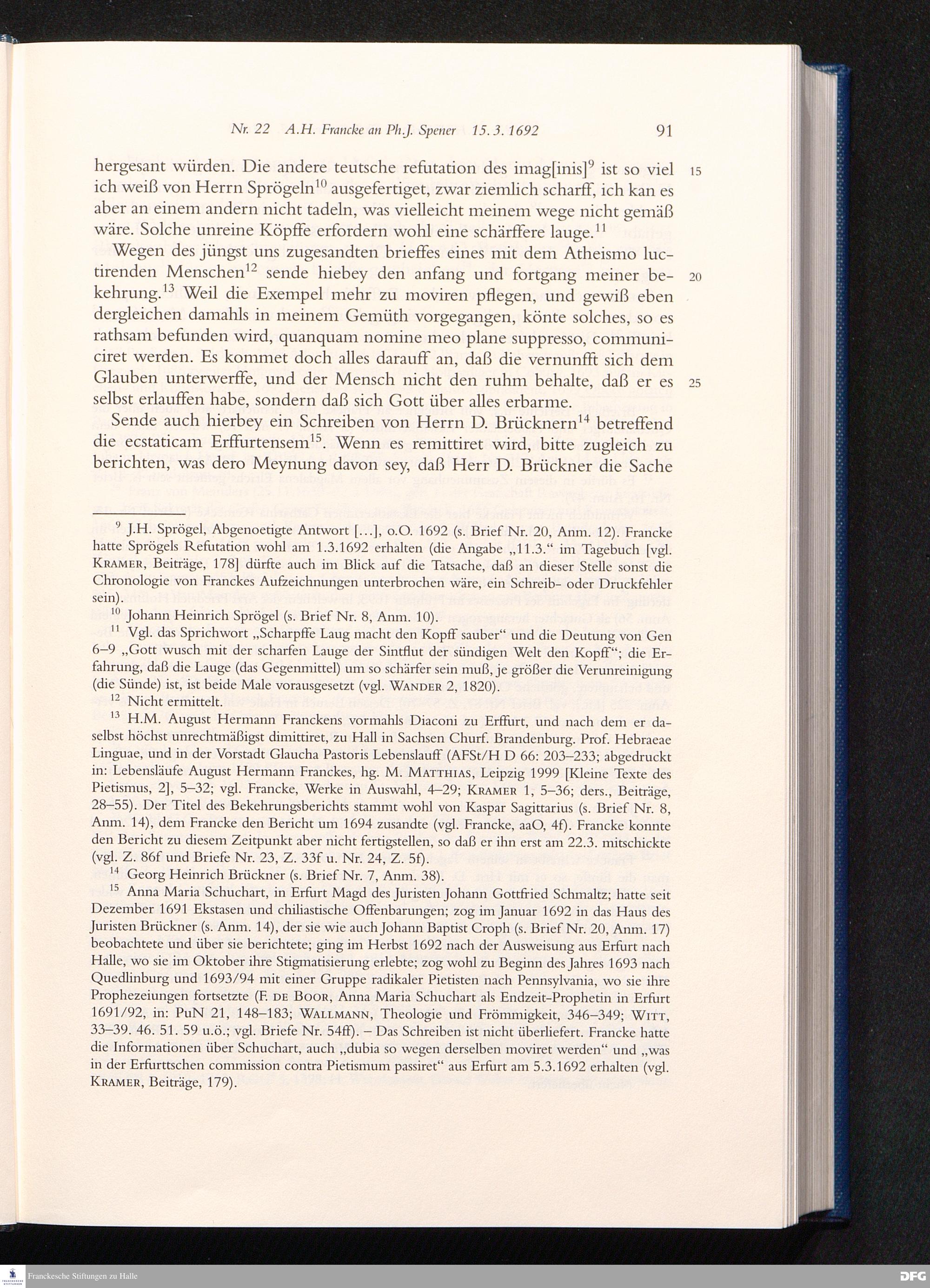 Nr. 22 A. H. Francke an Ph. J. Spener 15.03.1692