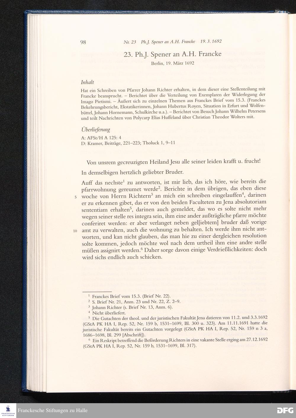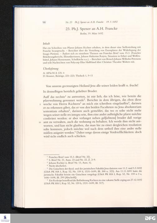 Briefwechsel mit August Hermann Francke : 1689 - 1704 / Philipp Jakob Spener. Hrsg. von Johannes Wallmann ... in Zsarb. mit Veronika Albrecht-Birkner