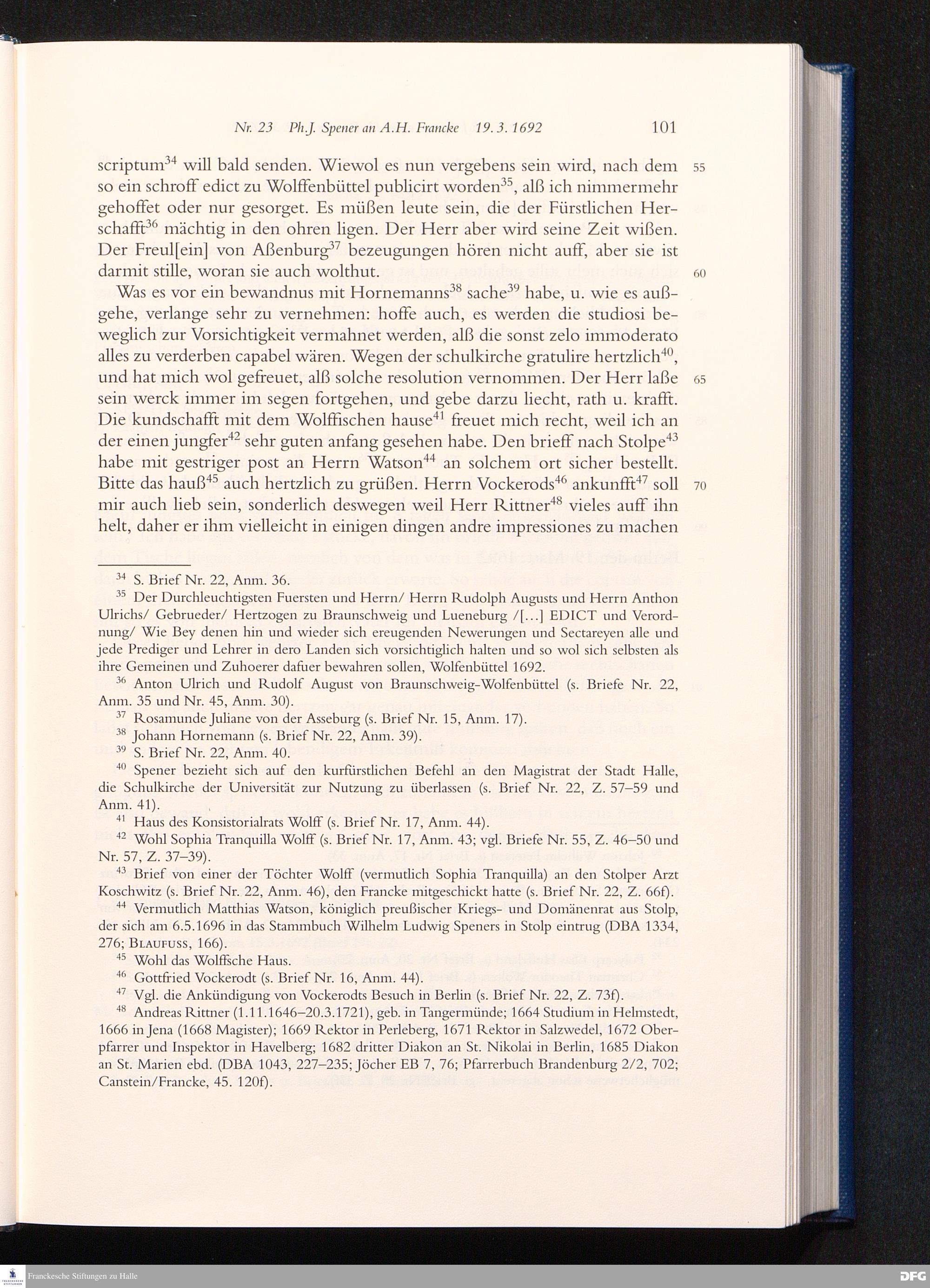 Briefwechsel mit August Hermann Francke : 1689 - 1704 / Philipp Jakob Spener. Hrsg. von Johannes Wallmann ... in Zsarb. mit Veronika Albrecht-Birkner