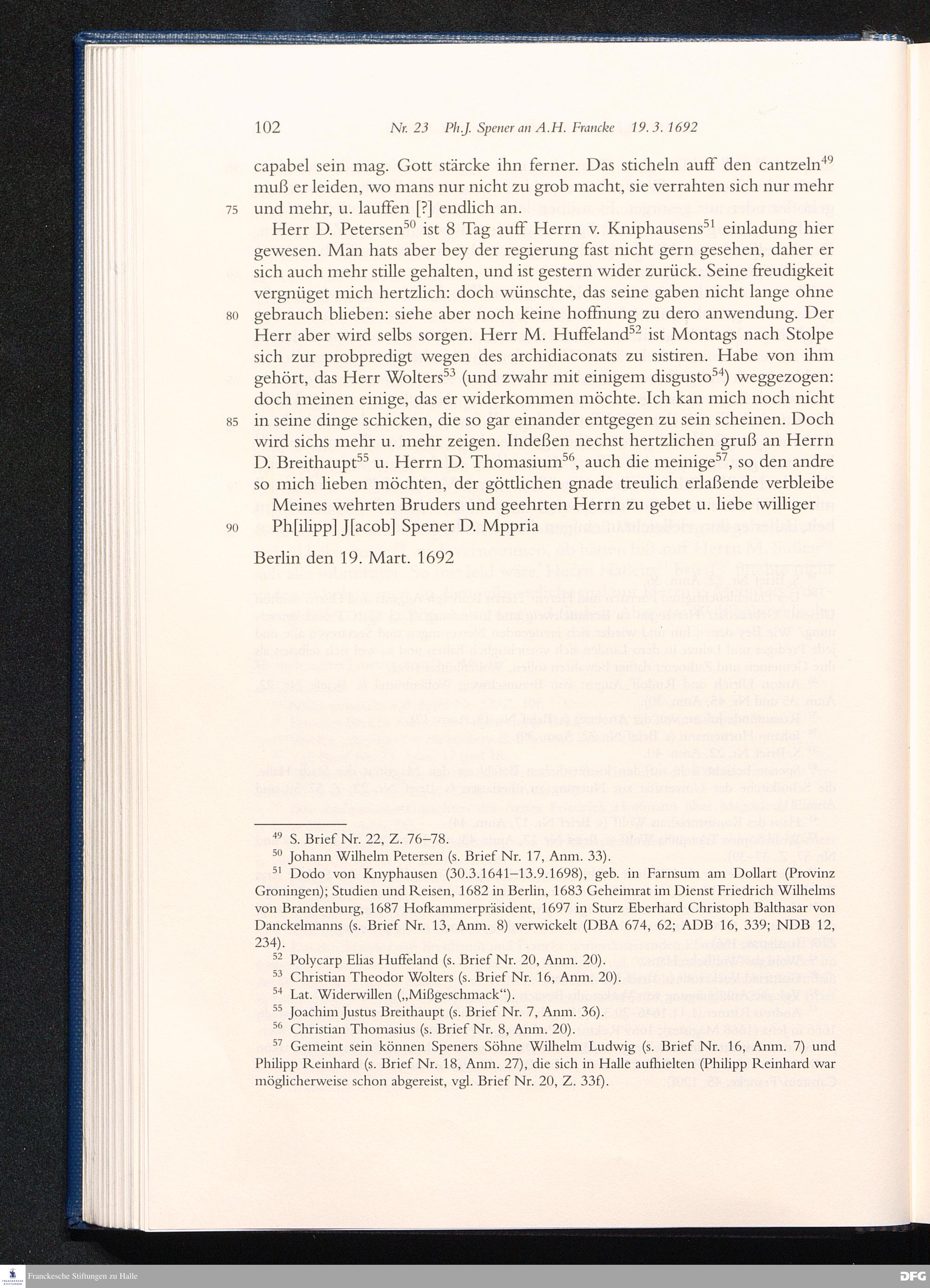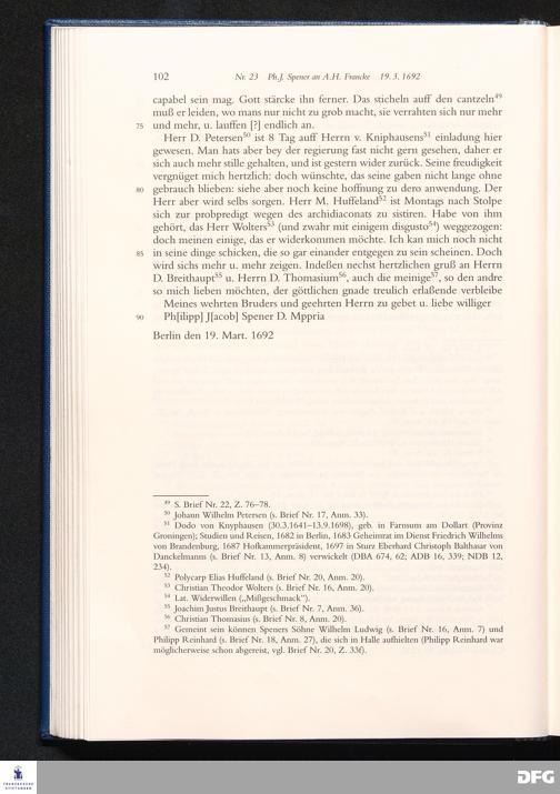 Briefwechsel mit August Hermann Francke : 1689 - 1704 / Philipp Jakob Spener. Hrsg. von Johannes Wallmann ... in Zsarb. mit Veronika Albrecht-Birkner