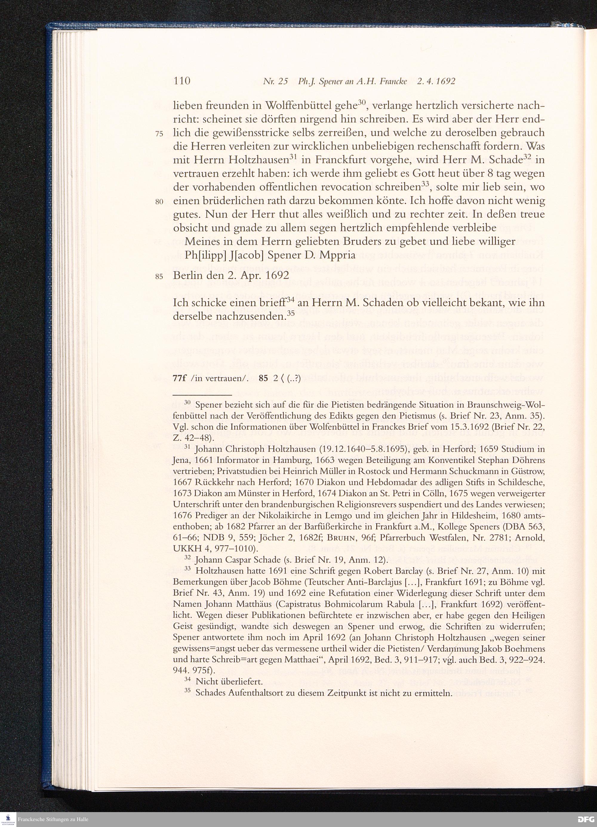Briefwechsel mit August Hermann Francke : 1689 - 1704 / Philipp Jakob Spener. Hrsg. von Johannes Wallmann ... in Zsarb. mit Veronika Albrecht-Birkner