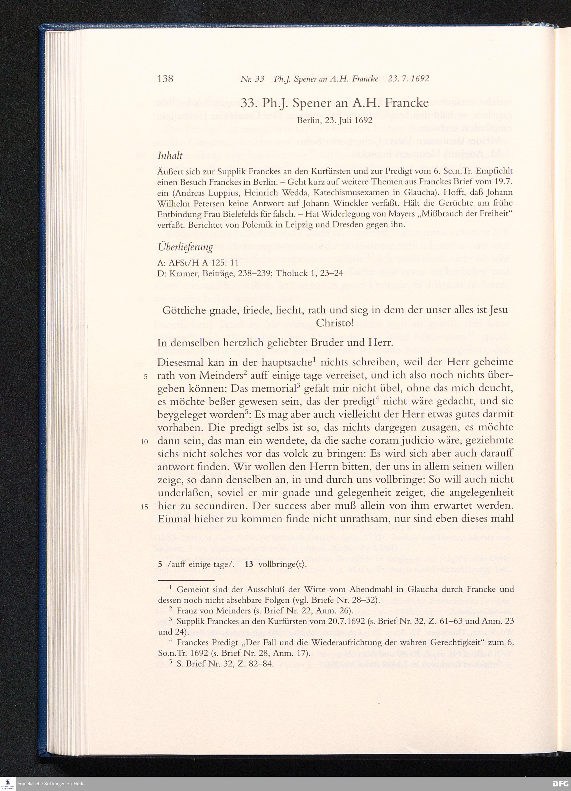 Briefwechsel mit August Hermann Francke : 1689 - 1704 / Philipp Jakob Spener. Hrsg. von Johannes Wallmann ... in Zsarb. mit Veronika Albrecht-Birkner