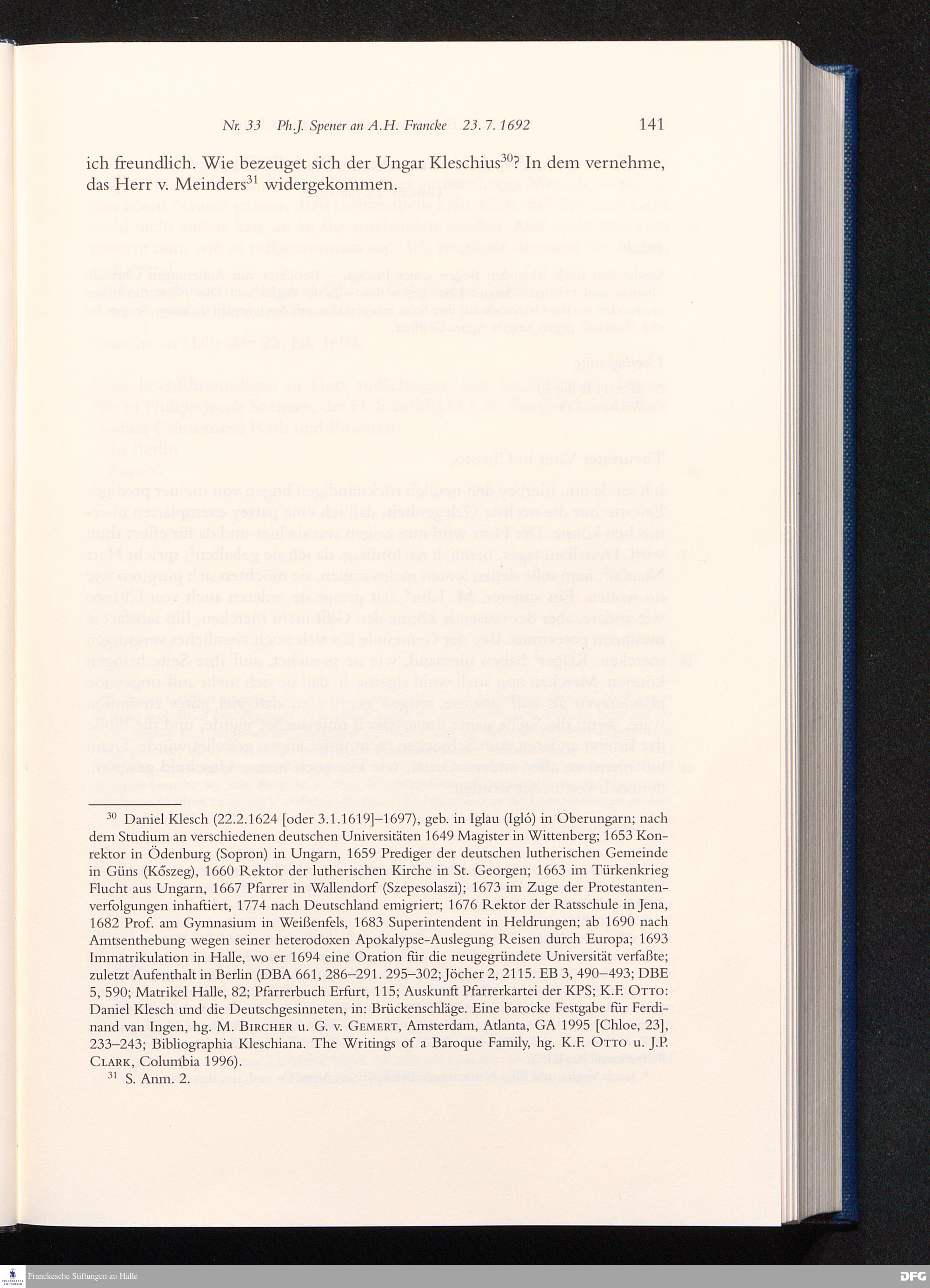 Briefwechsel mit August Hermann Francke : 1689 - 1704 / Philipp Jakob Spener. Hrsg. von Johannes Wallmann ... in Zsarb. mit Veronika Albrecht-Birkner