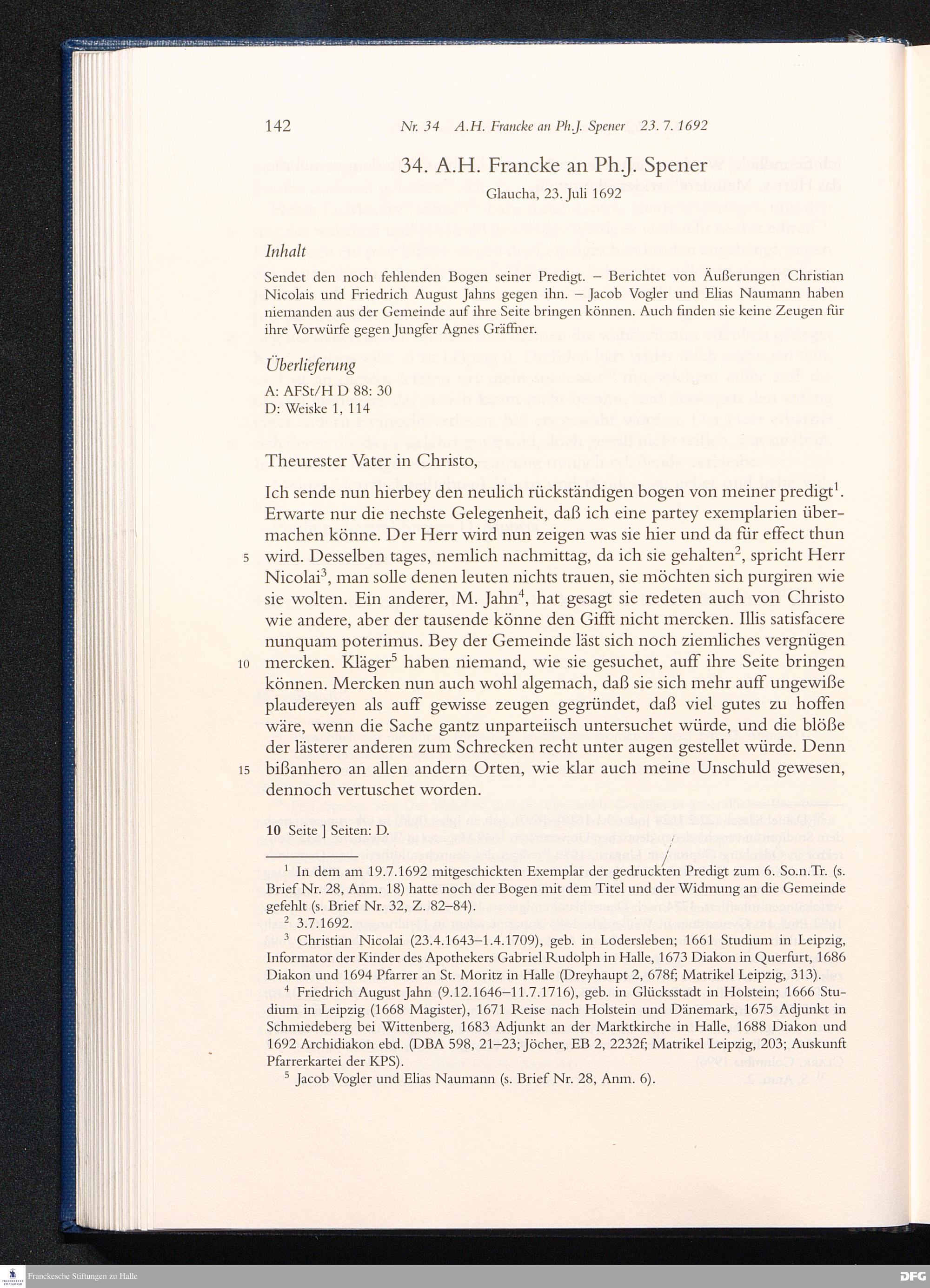 Nr. 34 A. H. Francke an Ph. J. Spener 23.07.1692