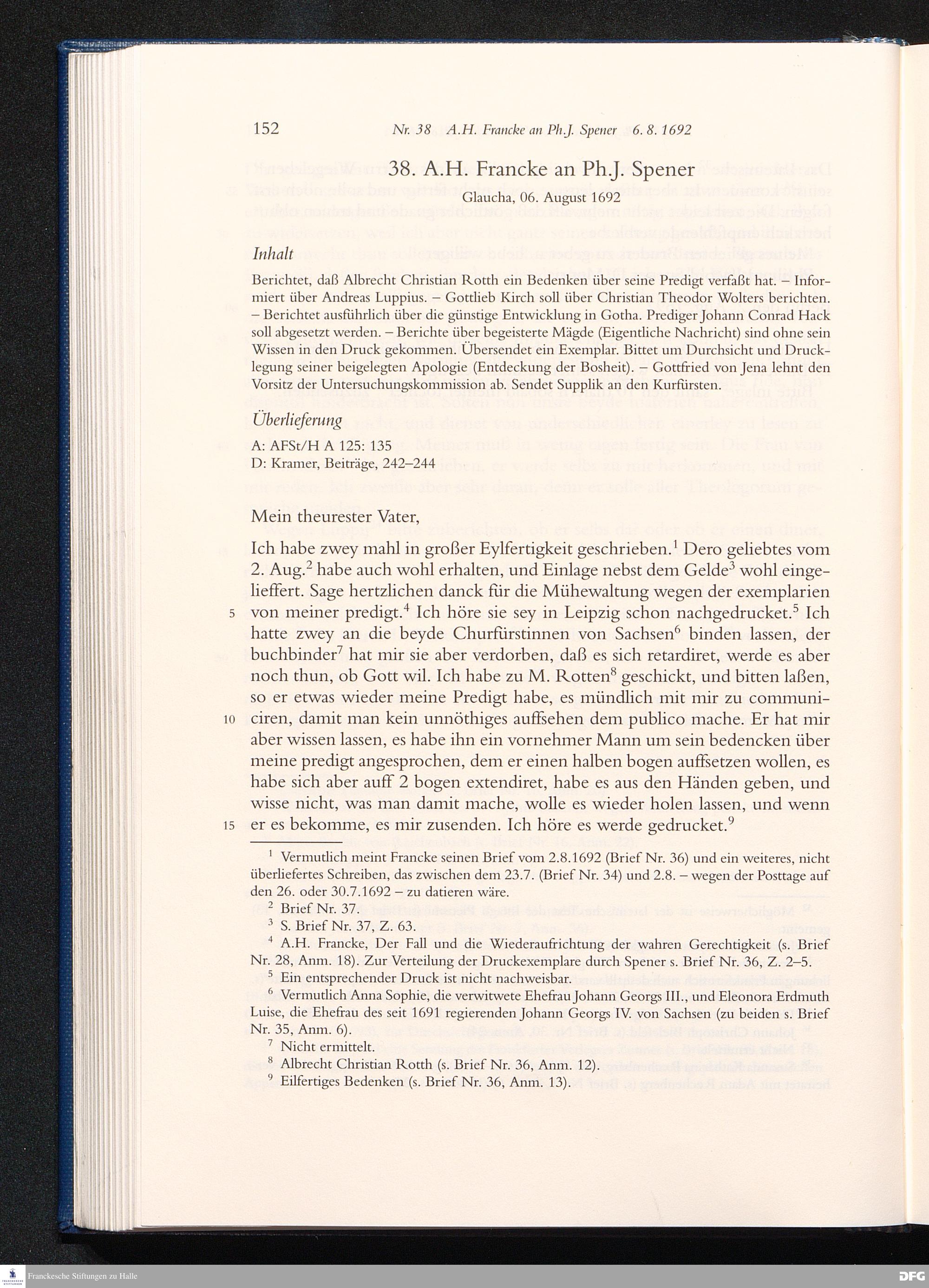 Nr. 38 A. H. Francke an Ph. J. Spener 06.08.1692