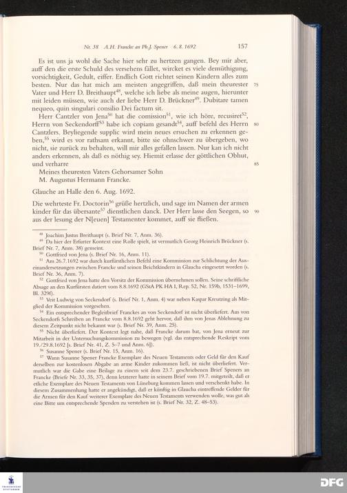 Nr. 38 A. H. Francke an Ph. J. Spener 06.08.1692