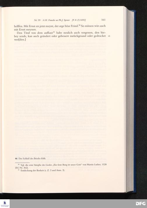 Nr. 39 A. H. Francke an Ph. J. Spener [09.08.(?) 1692]