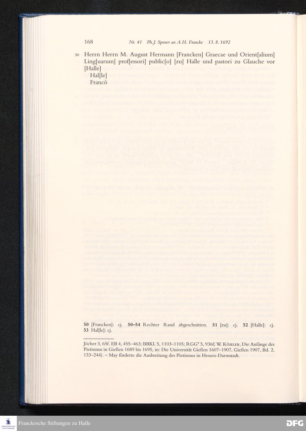 Briefwechsel mit August Hermann Francke : 1689 - 1704 / Philipp Jakob Spener. Hrsg. von Johannes Wallmann ... in Zsarb. mit Veronika Albrecht-Birkner