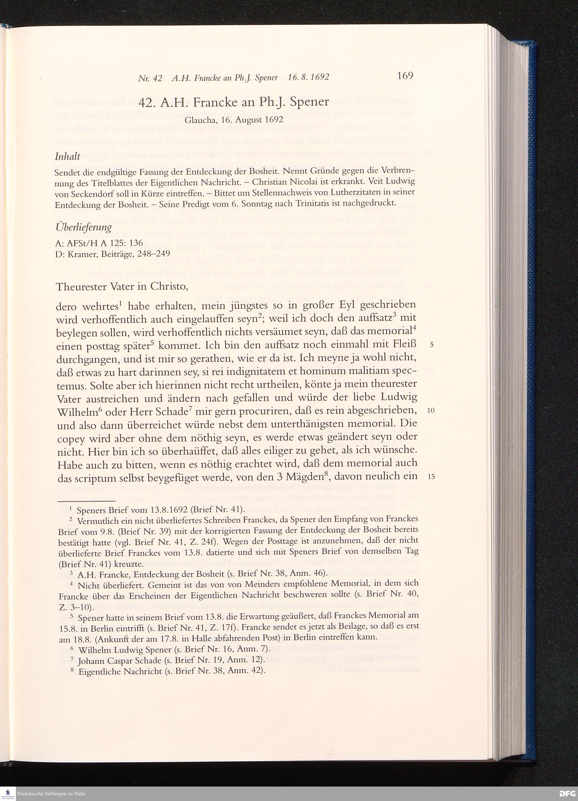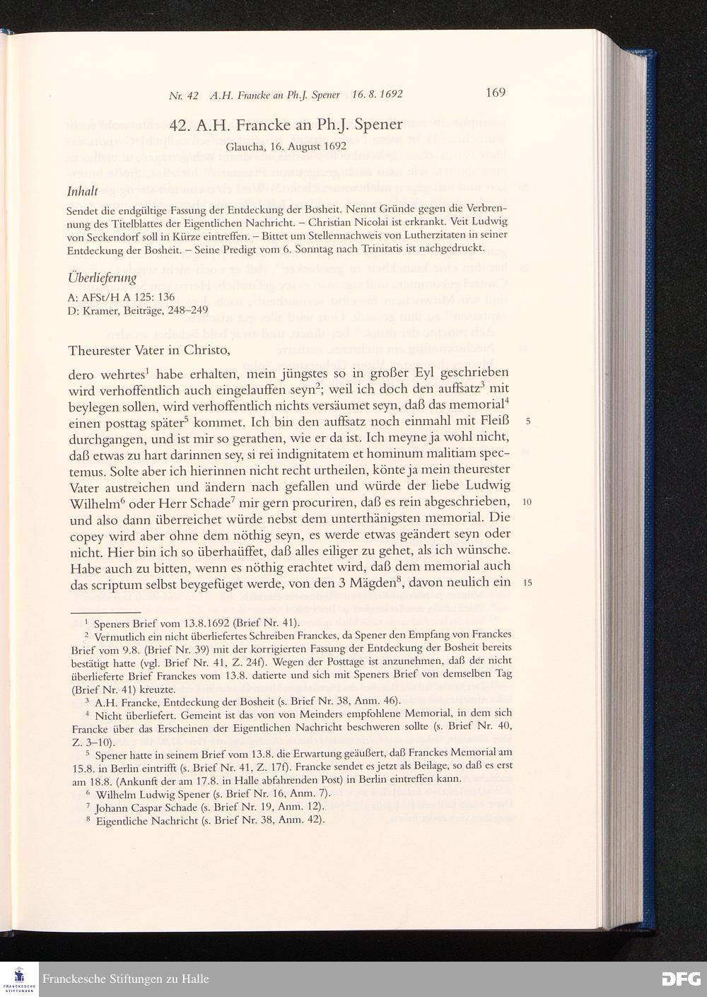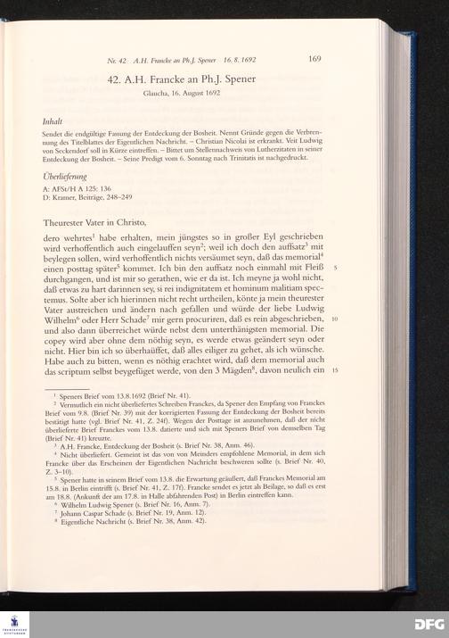 Nr. 42 A. H. Francke an Ph. J. Spener 16.08.1692