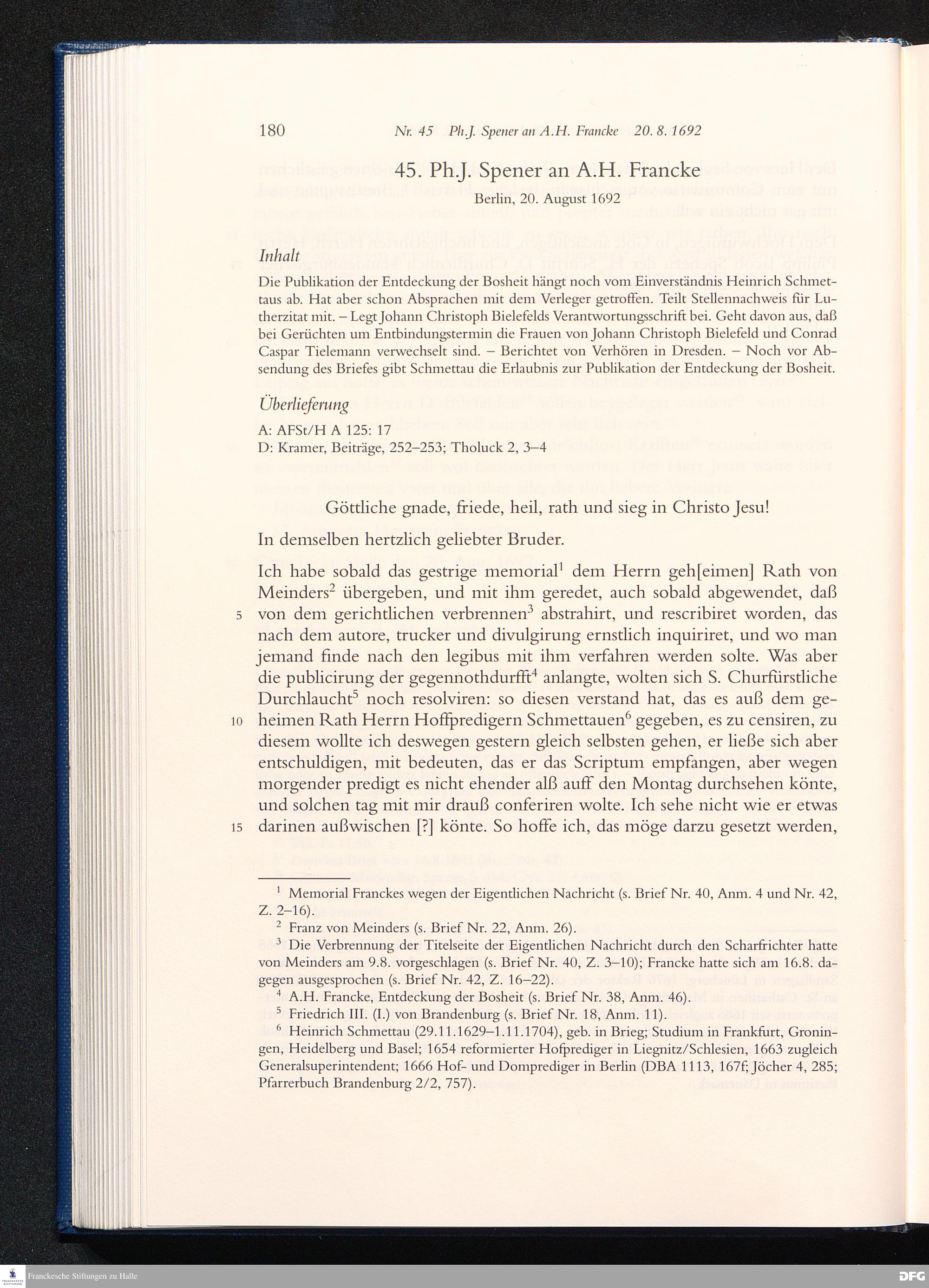 Briefwechsel mit August Hermann Francke : 1689 - 1704 / Philipp Jakob Spener. Hrsg. von Johannes Wallmann ... in Zsarb. mit Veronika Albrecht-Birkner