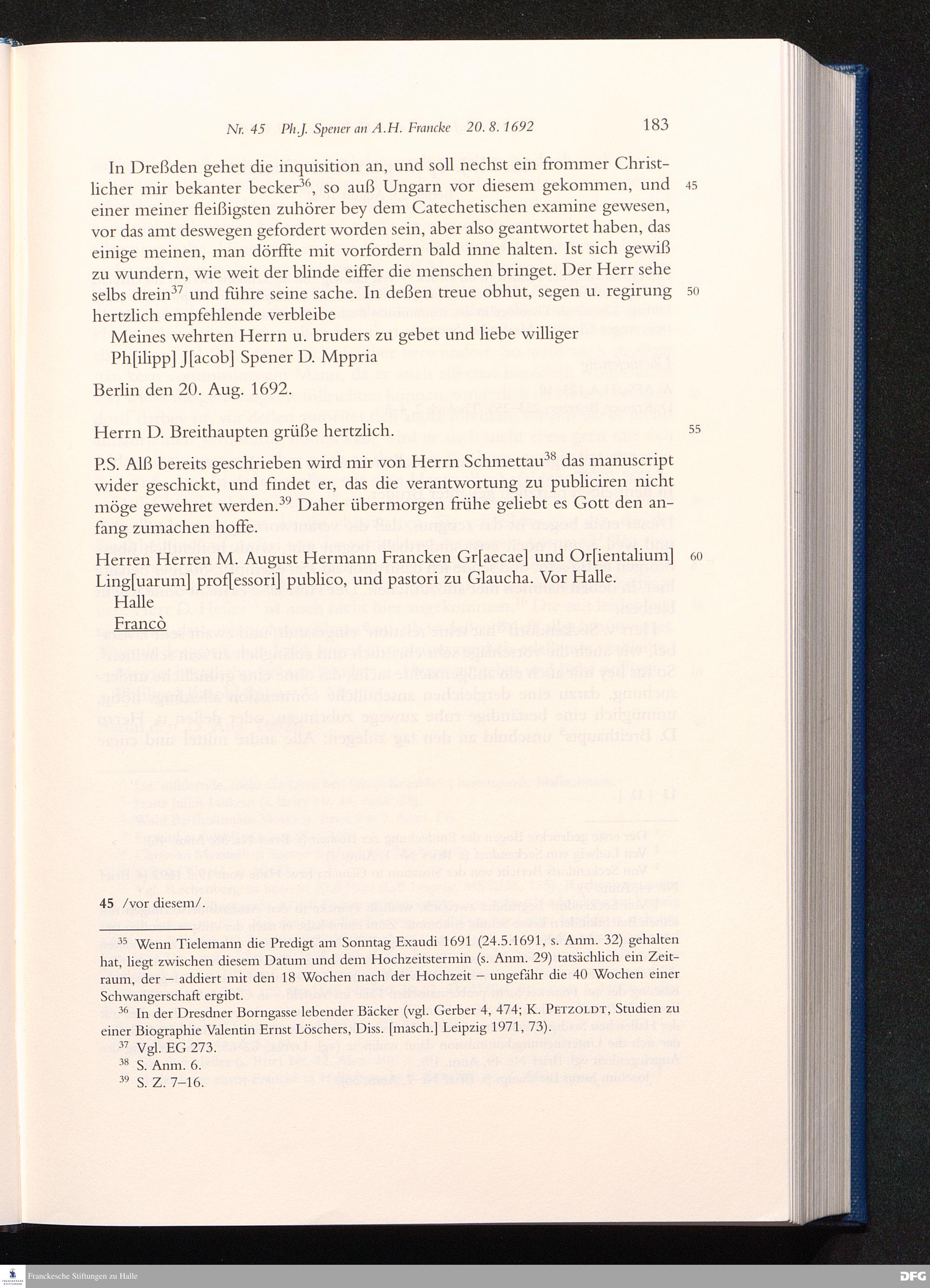 Briefwechsel mit August Hermann Francke : 1689 - 1704 / Philipp Jakob Spener. Hrsg. von Johannes Wallmann ... in Zsarb. mit Veronika Albrecht-Birkner