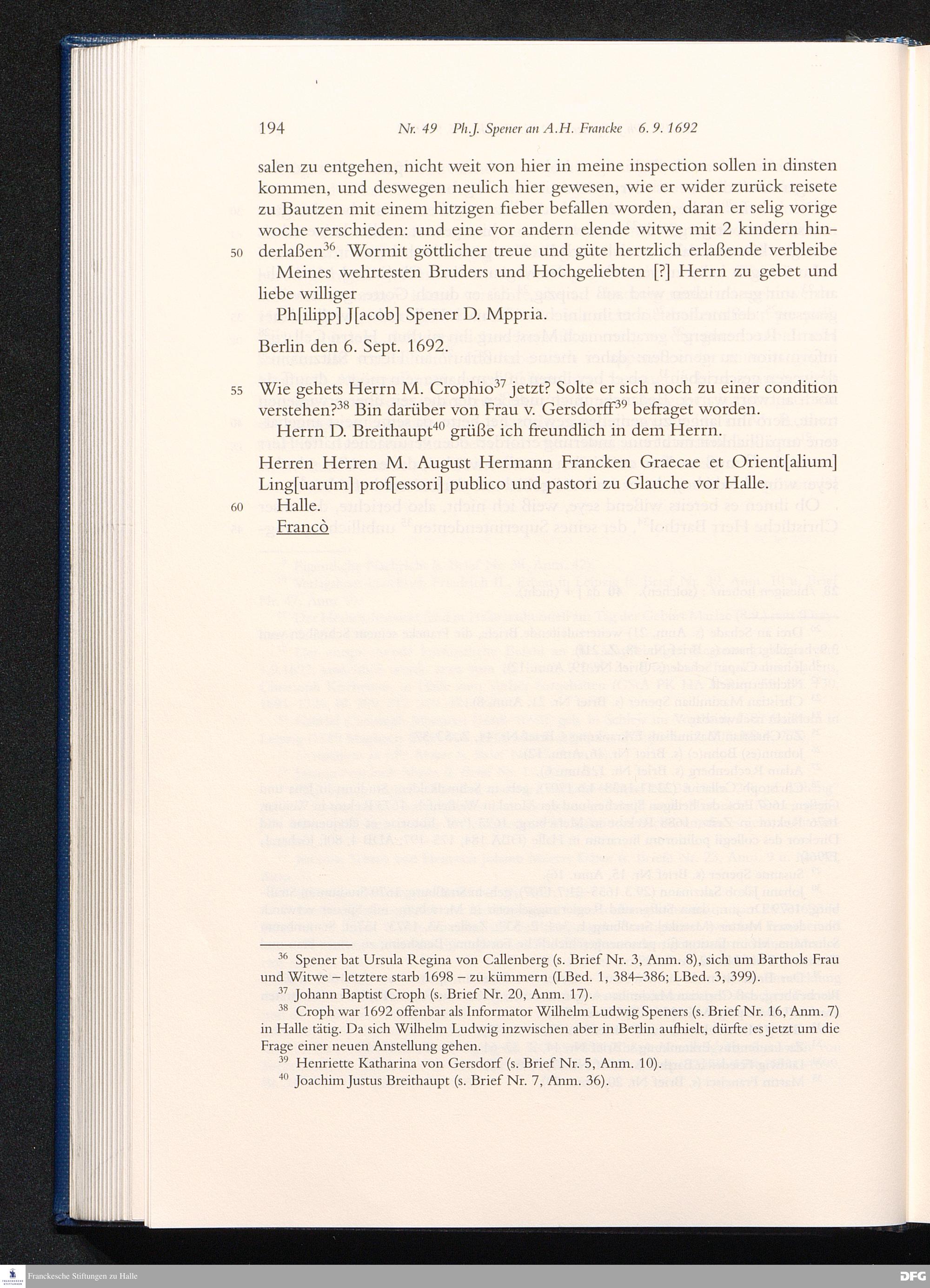 Briefwechsel mit August Hermann Francke : 1689 - 1704 / Philipp Jakob Spener. Hrsg. von Johannes Wallmann ... in Zsarb. mit Veronika Albrecht-Birkner
