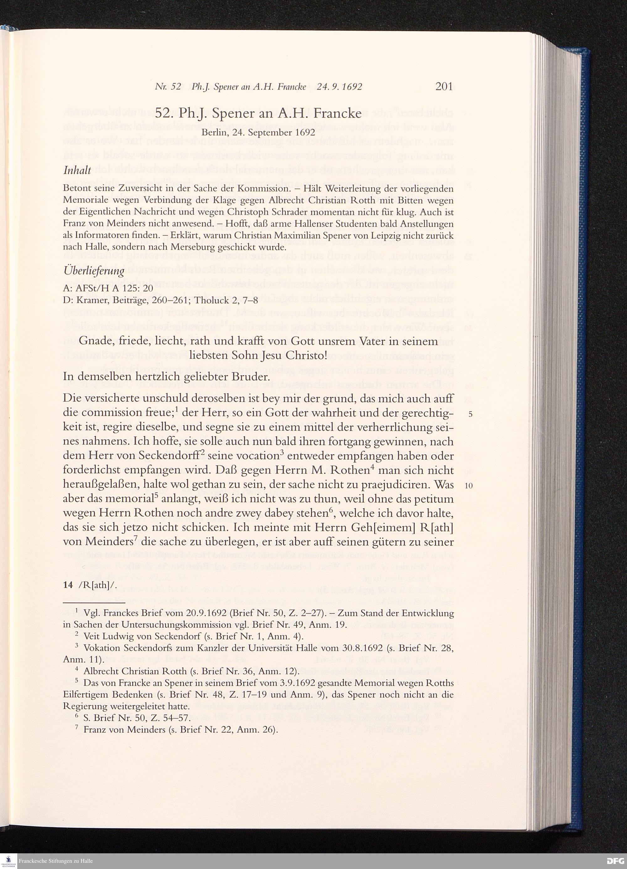 Briefwechsel mit August Hermann Francke : 1689 - 1704 / Philipp Jakob Spener. Hrsg. von Johannes Wallmann ... in Zsarb. mit Veronika Albrecht-Birkner