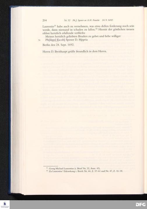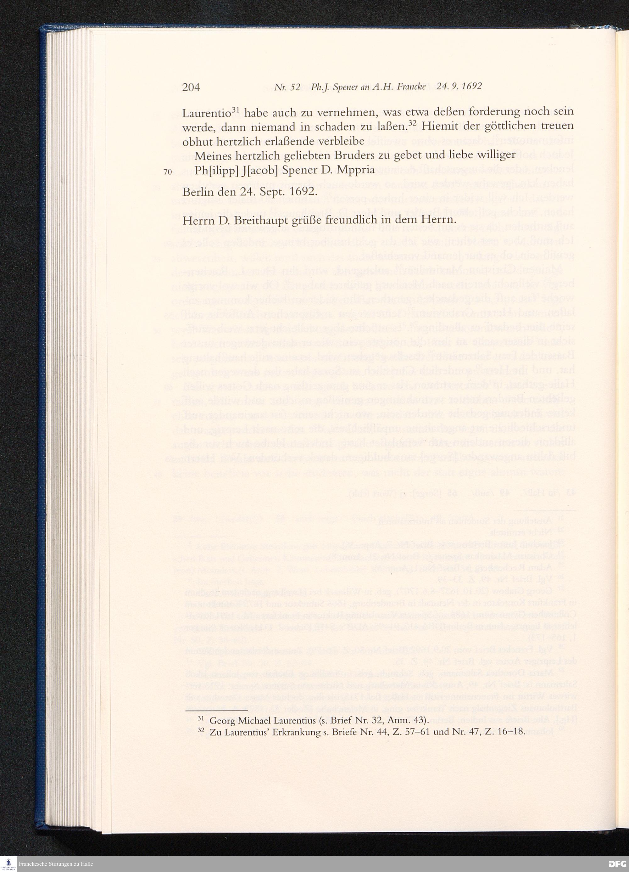 Briefwechsel mit August Hermann Francke : 1689 - 1704 / Philipp Jakob Spener. Hrsg. von Johannes Wallmann ... in Zsarb. mit Veronika Albrecht-Birkner