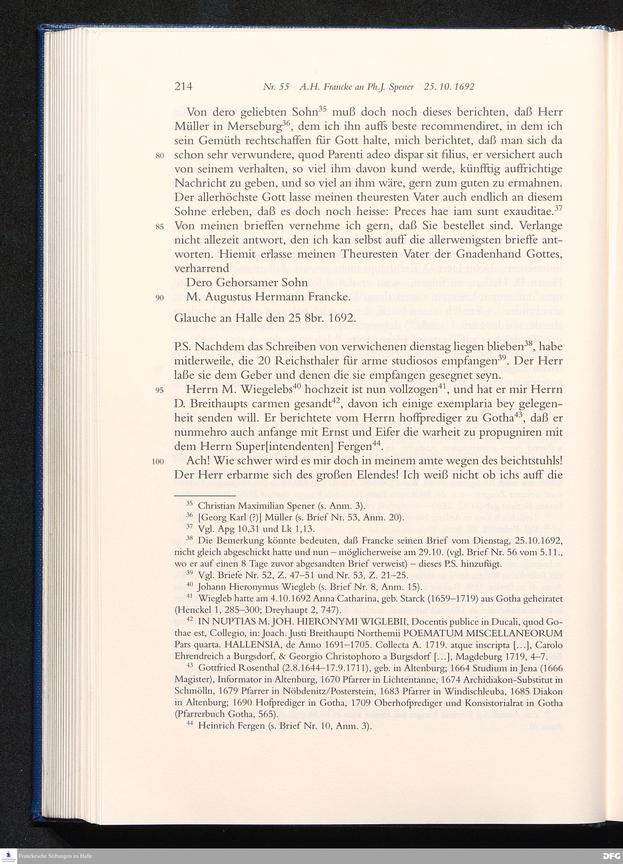 Nr. 55 A. H. Francke an Ph. J. Spener 25.10.1692
