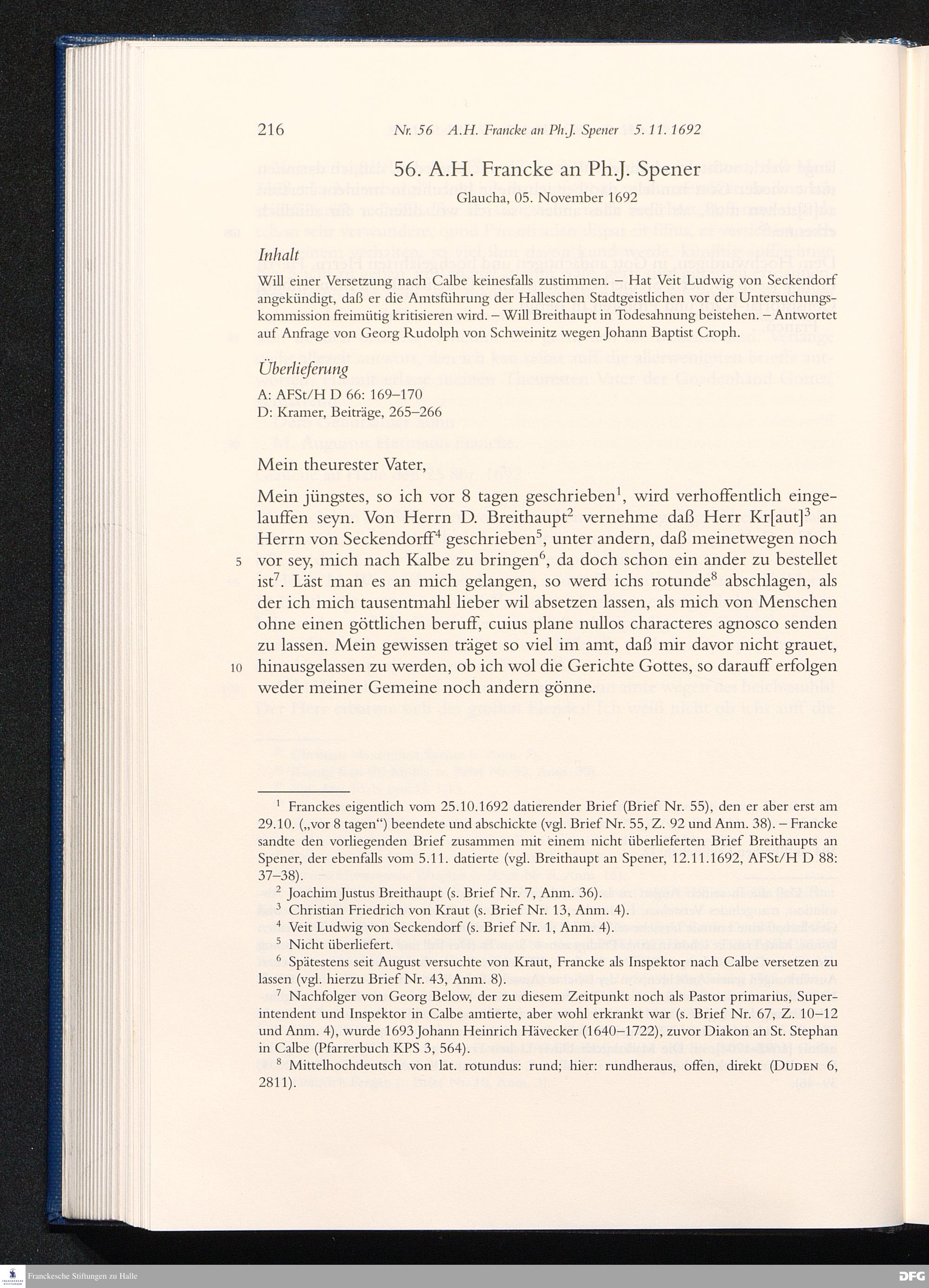 Nr. 56 A. H. Francke an Ph. J. Spener 05.11.1692