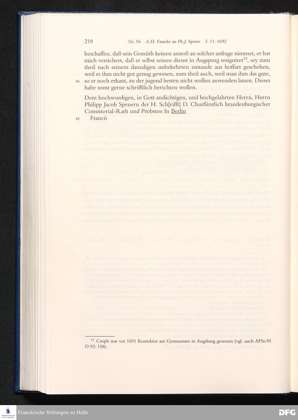 Nr. 56 A. H. Francke an Ph. J. Spener 05.11.1692
