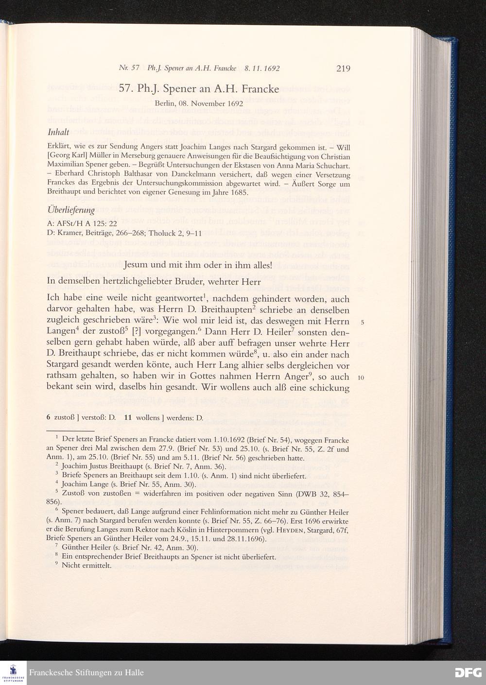 Briefwechsel mit August Hermann Francke : 1689 - 1704 / Philipp Jakob Spener. Hrsg. von Johannes Wallmann ... in Zsarb. mit Veronika Albrecht-Birkner