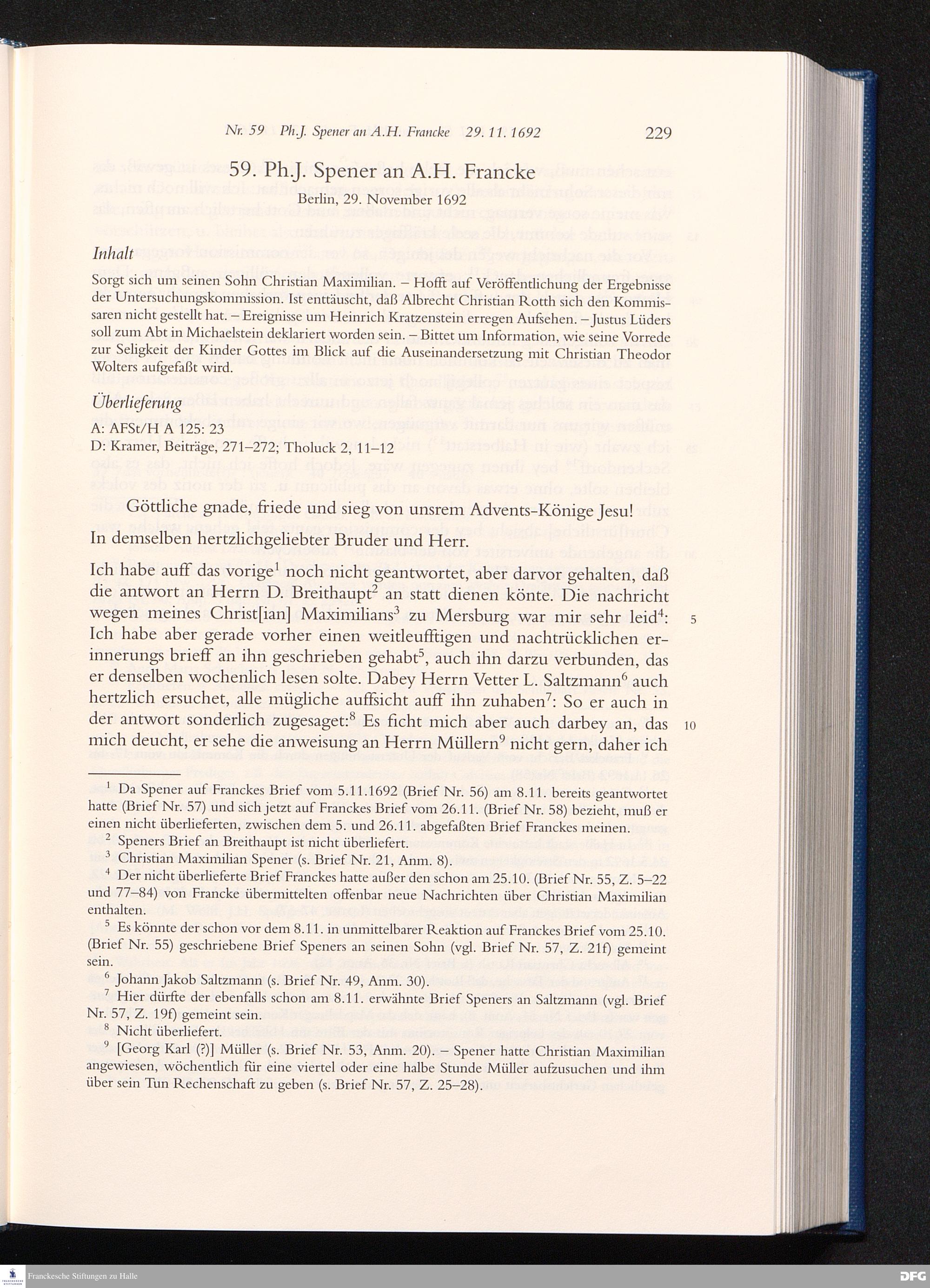 Briefwechsel mit August Hermann Francke : 1689 - 1704 / Philipp Jakob Spener. Hrsg. von Johannes Wallmann ... in Zsarb. mit Veronika Albrecht-Birkner
