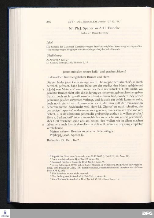 Briefwechsel mit August Hermann Francke : 1689 - 1704 / Philipp Jakob Spener. Hrsg. von Johannes Wallmann ... in Zsarb. mit Veronika Albrecht-Birkner